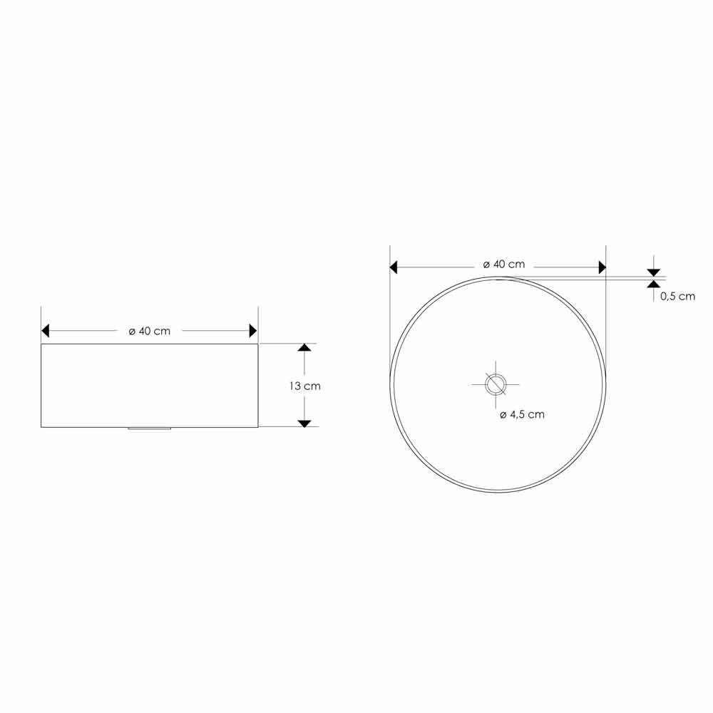 Bordvask i hvid harpiks med indvendig plade, der dækker det centrale afløb.