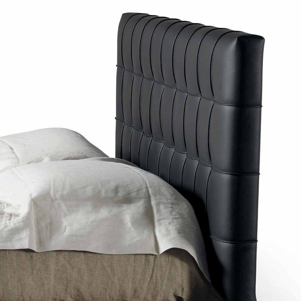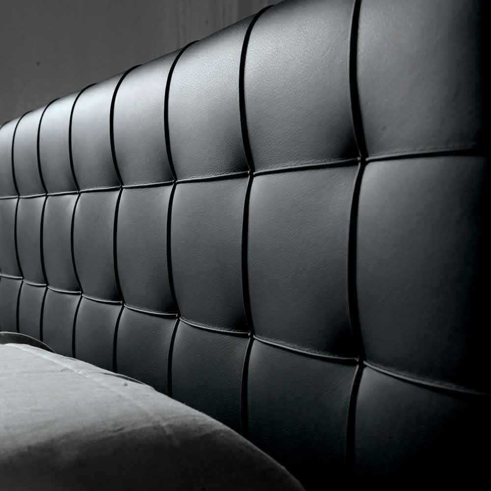 Capitonnè hovedgærde, betrukket med fuldkornet læder af første valg, forbedrer den massive valnødstruktur af sengen for et elegant og tydeligt æstetisk resultat.