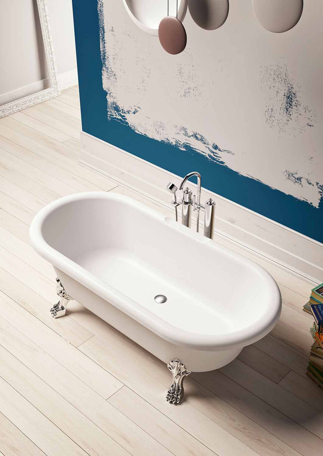 stramt men elegant design på samme tid . Specielt i dette badekar er de forkromede fødder: Den står på løveben, der definerer og understreger personligheden.