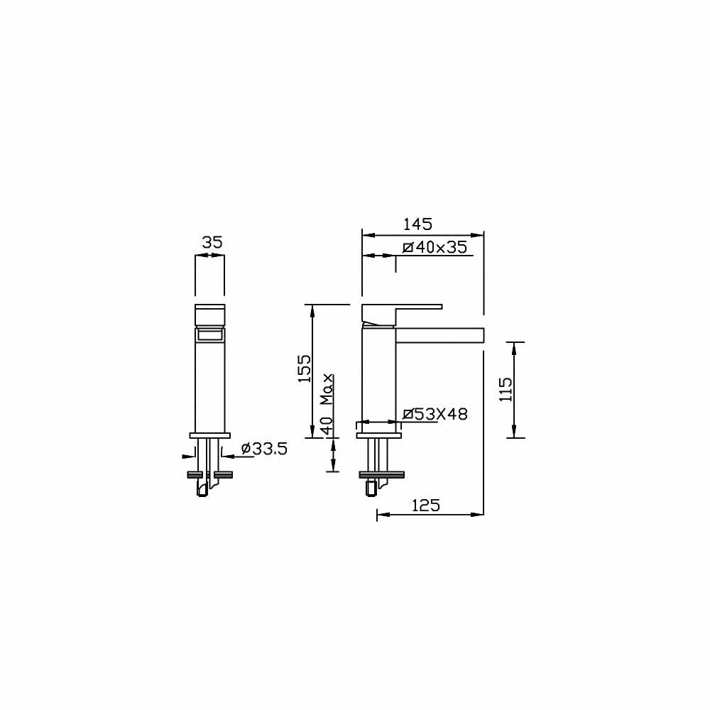 håndvaskarmatur uden affald med fleksible slanger med 3/8 hunhætte og fikseringssæt.
