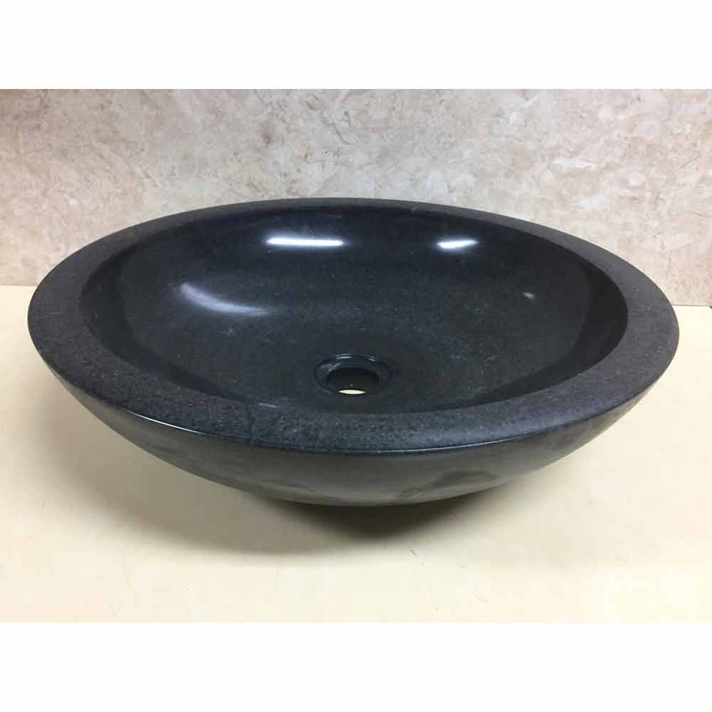 Håndlavet håndvask i natursten, moderne design. Farve: Sort