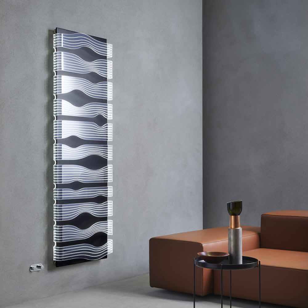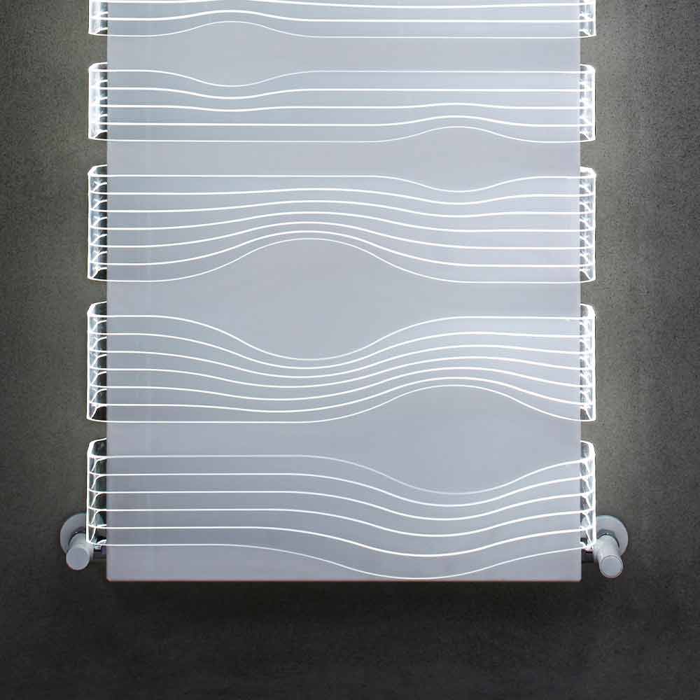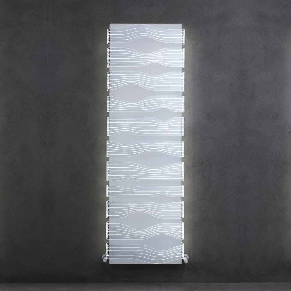 Moderne hydraulisk lodret designradiator med LED-lys, høj kvalitet fremstillet i Italien.