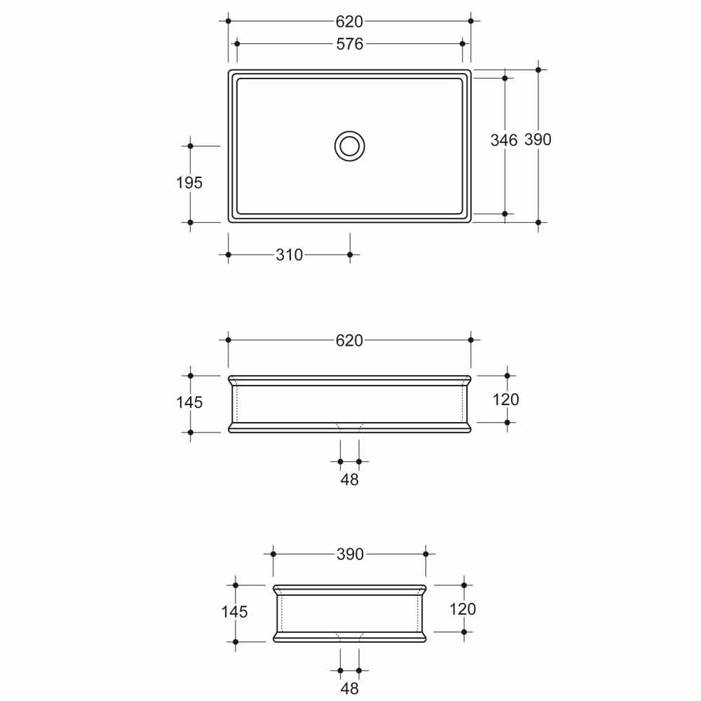 Håndvask med en diskret neoklassisk smag, en fortolkning renset for alle de snoede og urolige former af andre håndvaske.