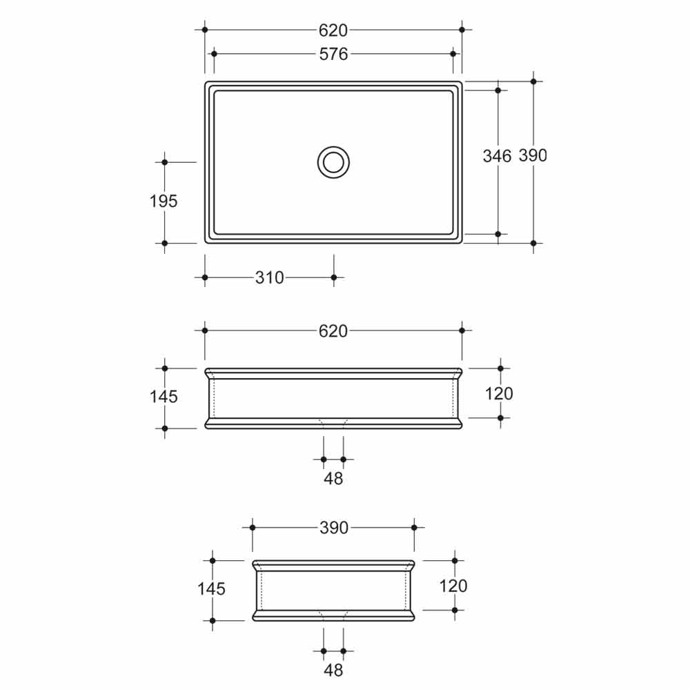 Design keramisk bordplade håndvask med guldkant fremstillet i Italien Debora