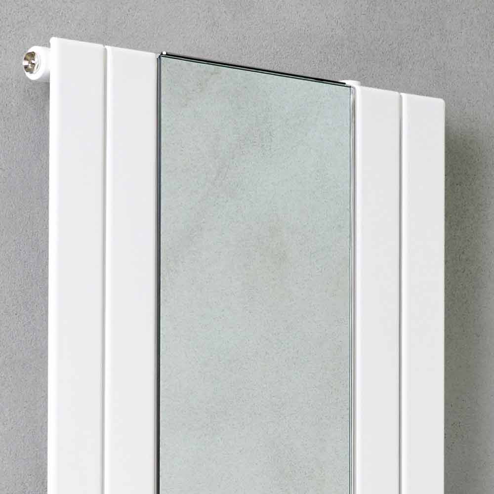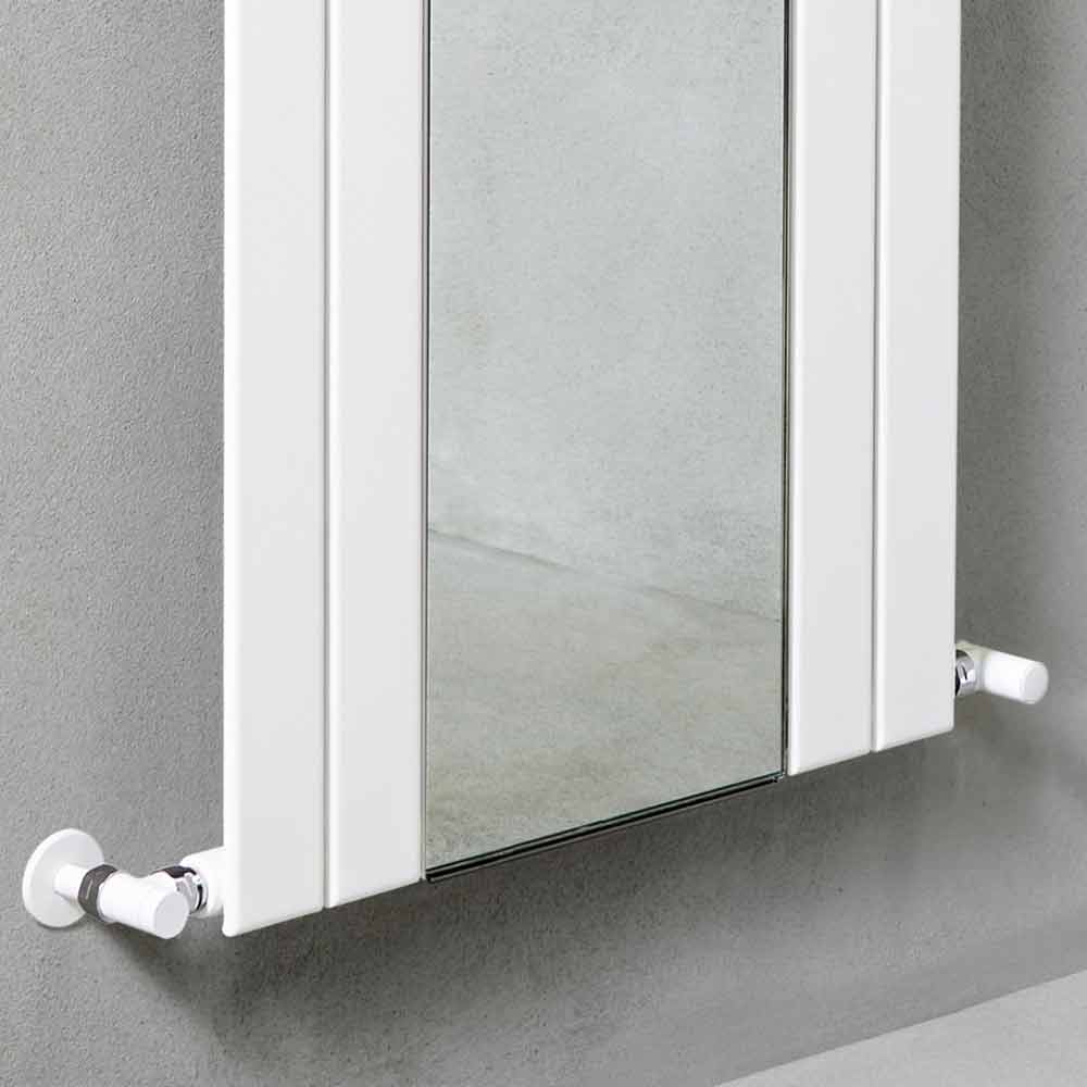 Denne radiator har et design bestående af 70x11 mm lodrette flade rør og 35 mm diameter manifolds; komplementets virkelige hovedperson er det centrale spejl, der giver en elegant atmosfære, der gør miljøet komplet.