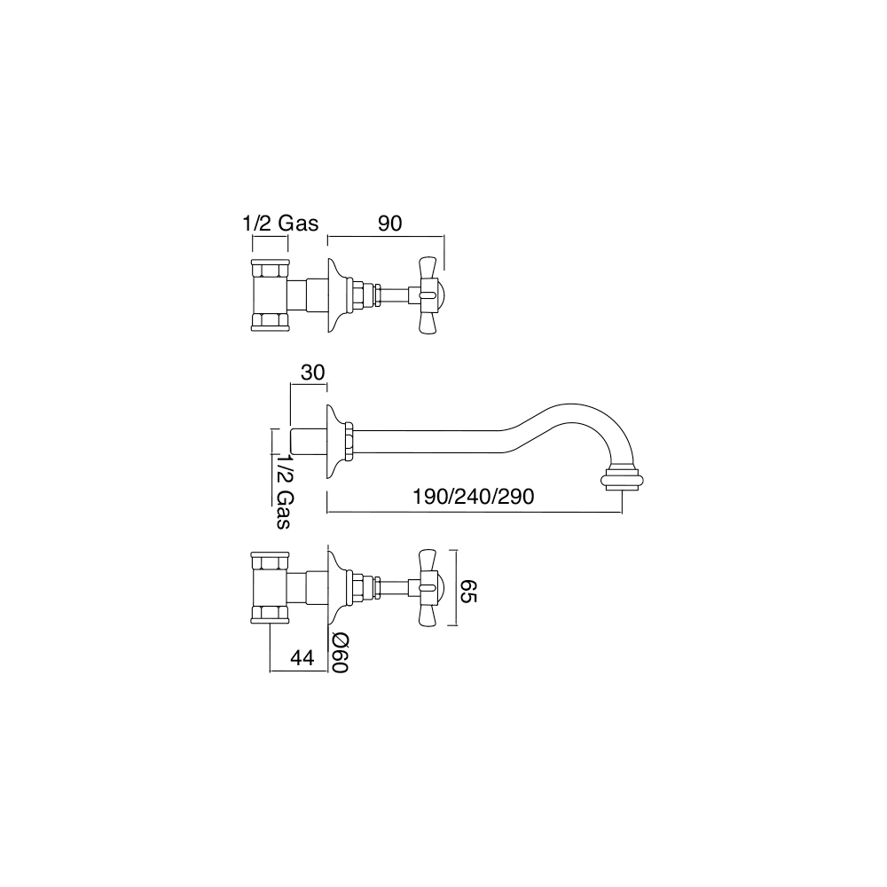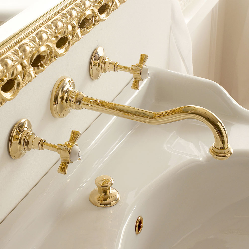 Vægmonteret vandhane til håndvask eller vask fremstillet i messing Katerina, fremstillet i Italien.