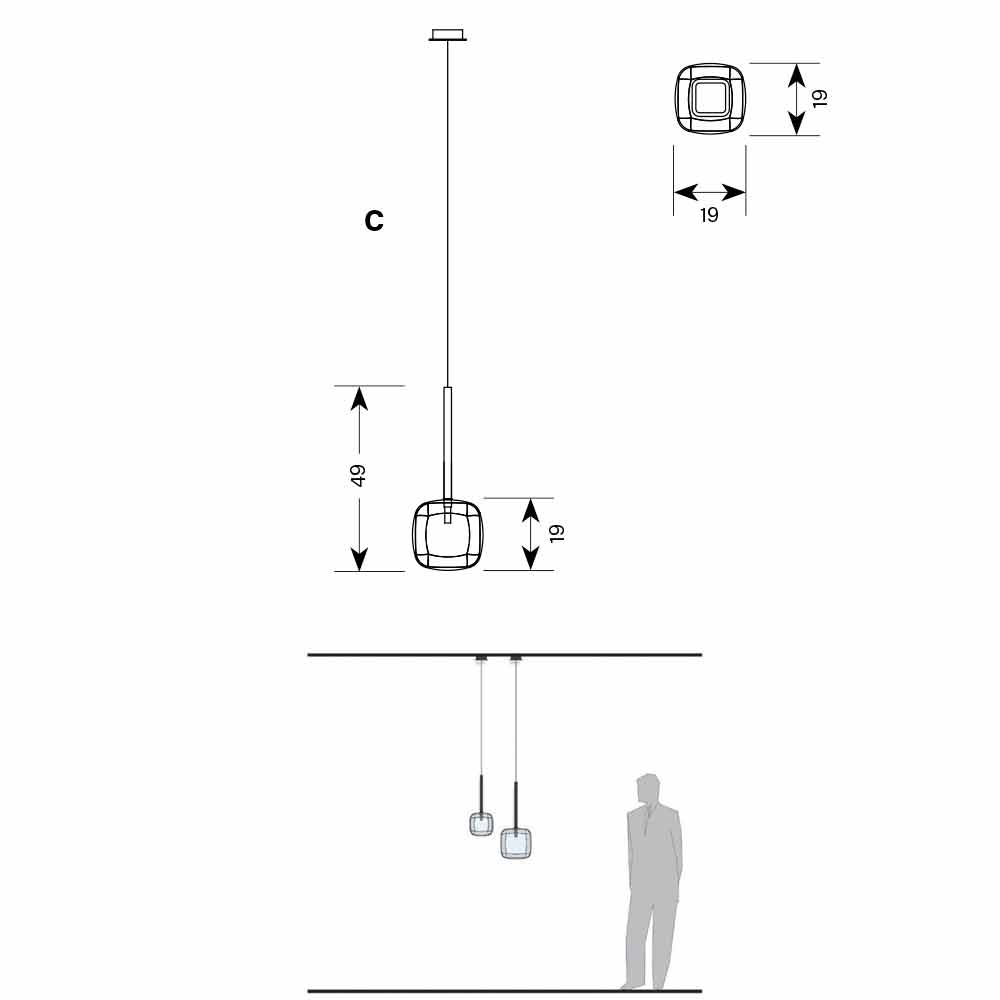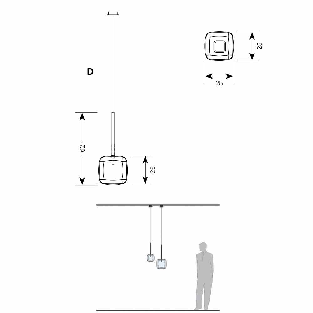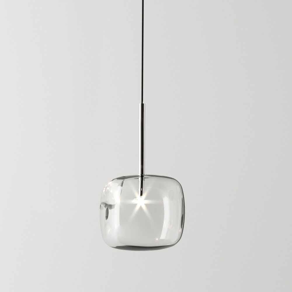 Design pendel i poleret metal med afrundet glasterning Made in Italy.