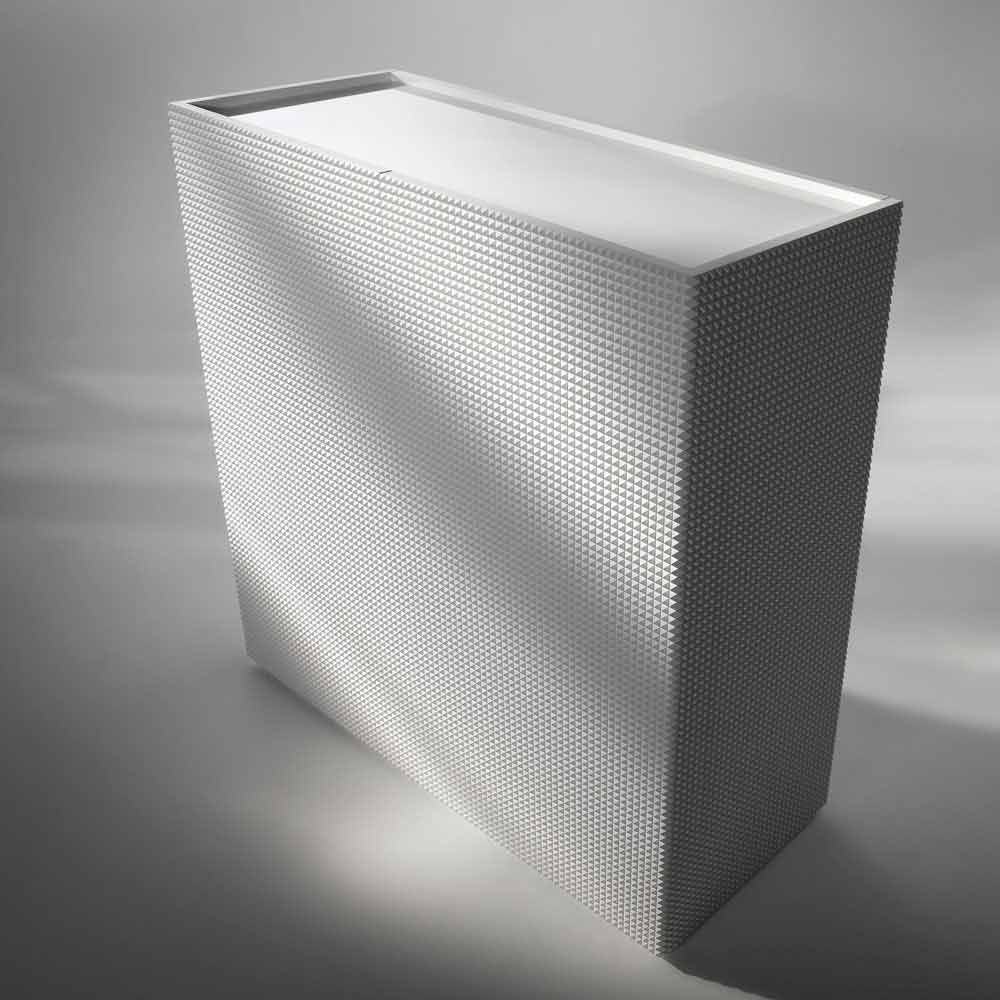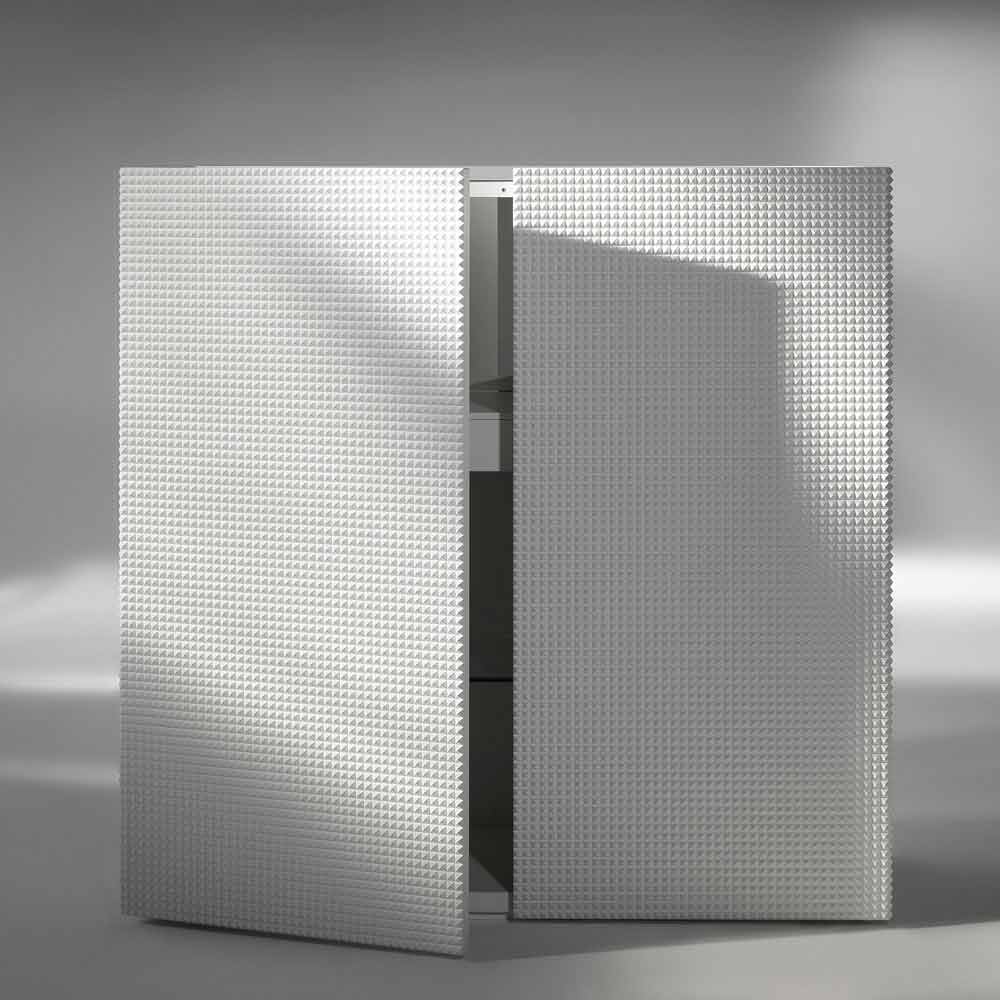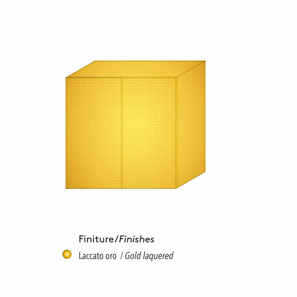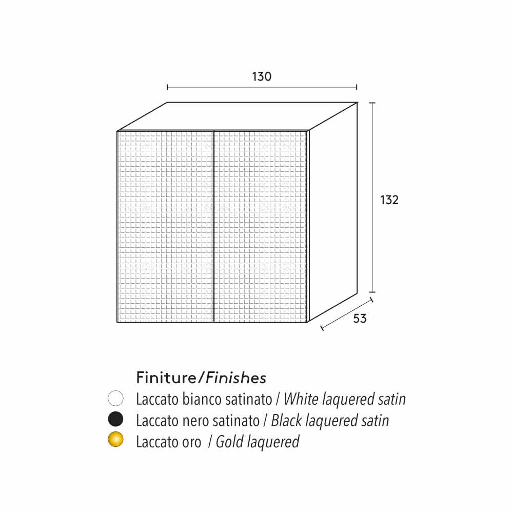Moderne skænk 2 låger med åbning på siderne og toppen i malet glas. indendørs glashylde. Satin finish. Fås i enten hvidlakeret satin, lakeret satin sortlakeret eller guld.