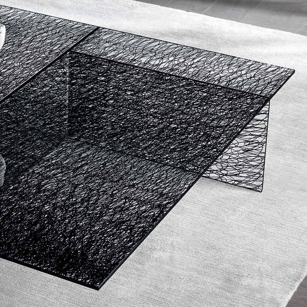 Sofabord i moderne design i dekoreret ekstra klart glas, håndlavet i Italien.