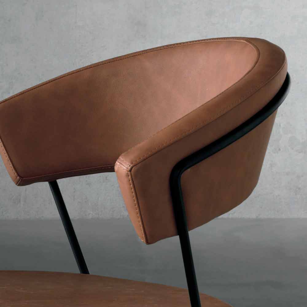 Helt produceret i Italien med en uigennemsigtig sortmetalstruktur og et sæde i tobakfarvet stof.