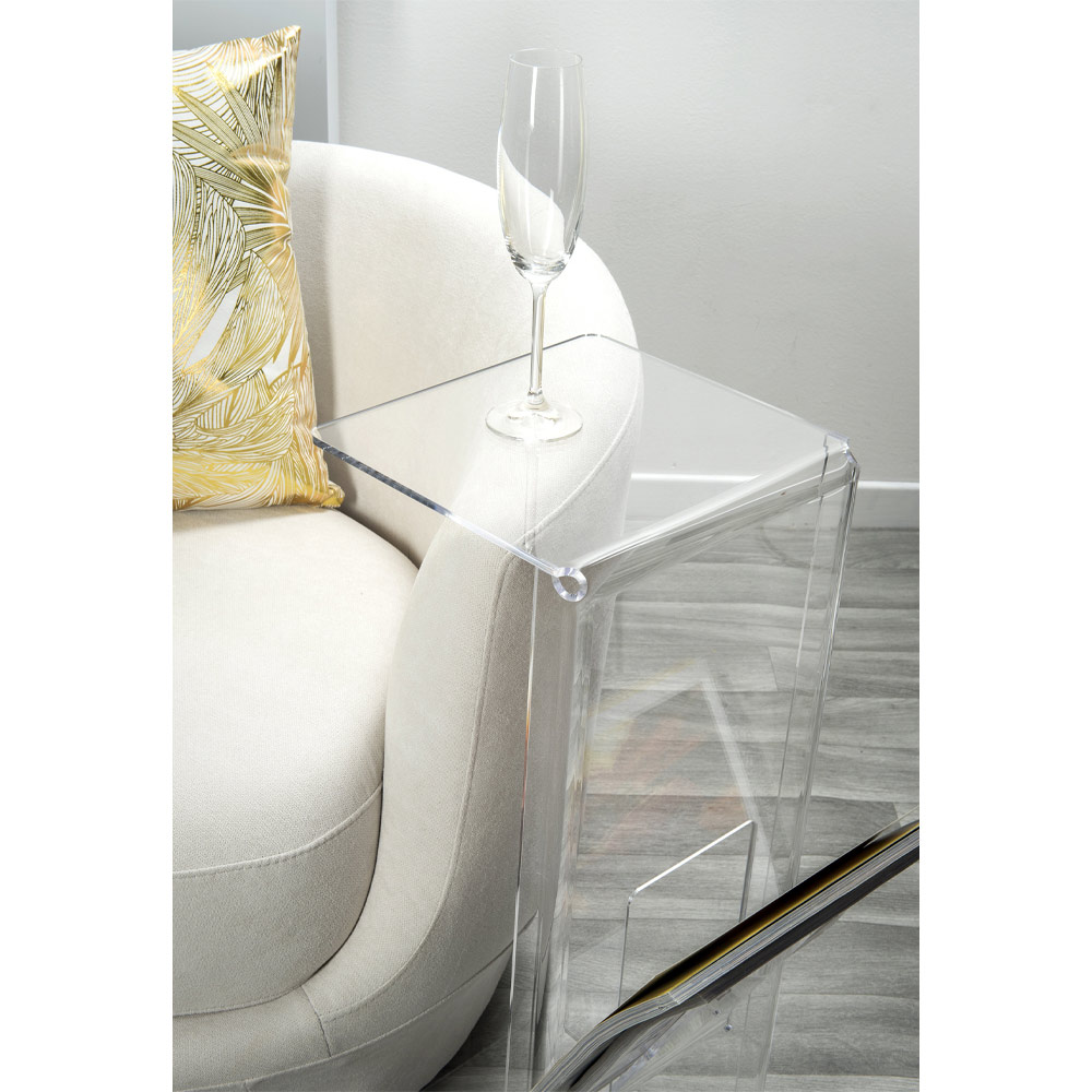 QUERO VAS lille bord er kendetegnet ved et moderne og elegant design, der passer perfekt til din stue. Det er lavet med PMMA fra virgin polymerer. Plexiglassens fysiske egenskaber (termisk isolerende, stødsikker, ikke deformerbar, uforanderlig) gør bordet velegnet til både indendørs og udendørs rum. Dens lysstyrke forbliver uændret og uændret over tid. Den anvendte PMMA plexiglas fra virgin-polymerer er ikke-toksisk, hypoallergen, lugtfri og antibakteriel. 100% genanvendeligt.