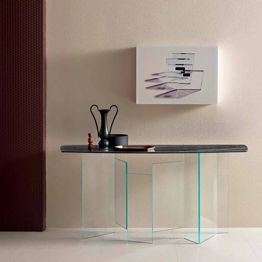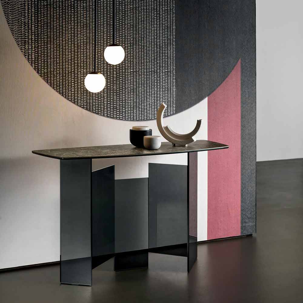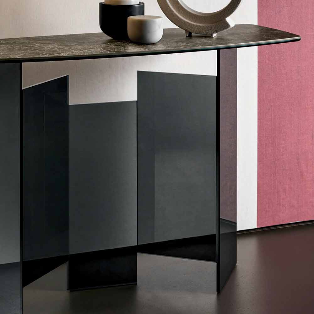 Moderne stue vogn med Emperador eller Noir Desir keramisk top og glasfod, realiseret for hånd i Italien.