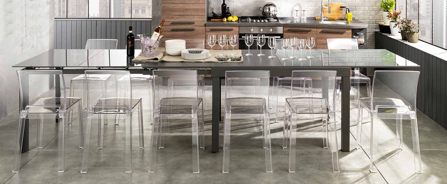 fire udvidelser , to i glas placeret under toppen og de andre to i Mdf, der giver mulighed for at nå en