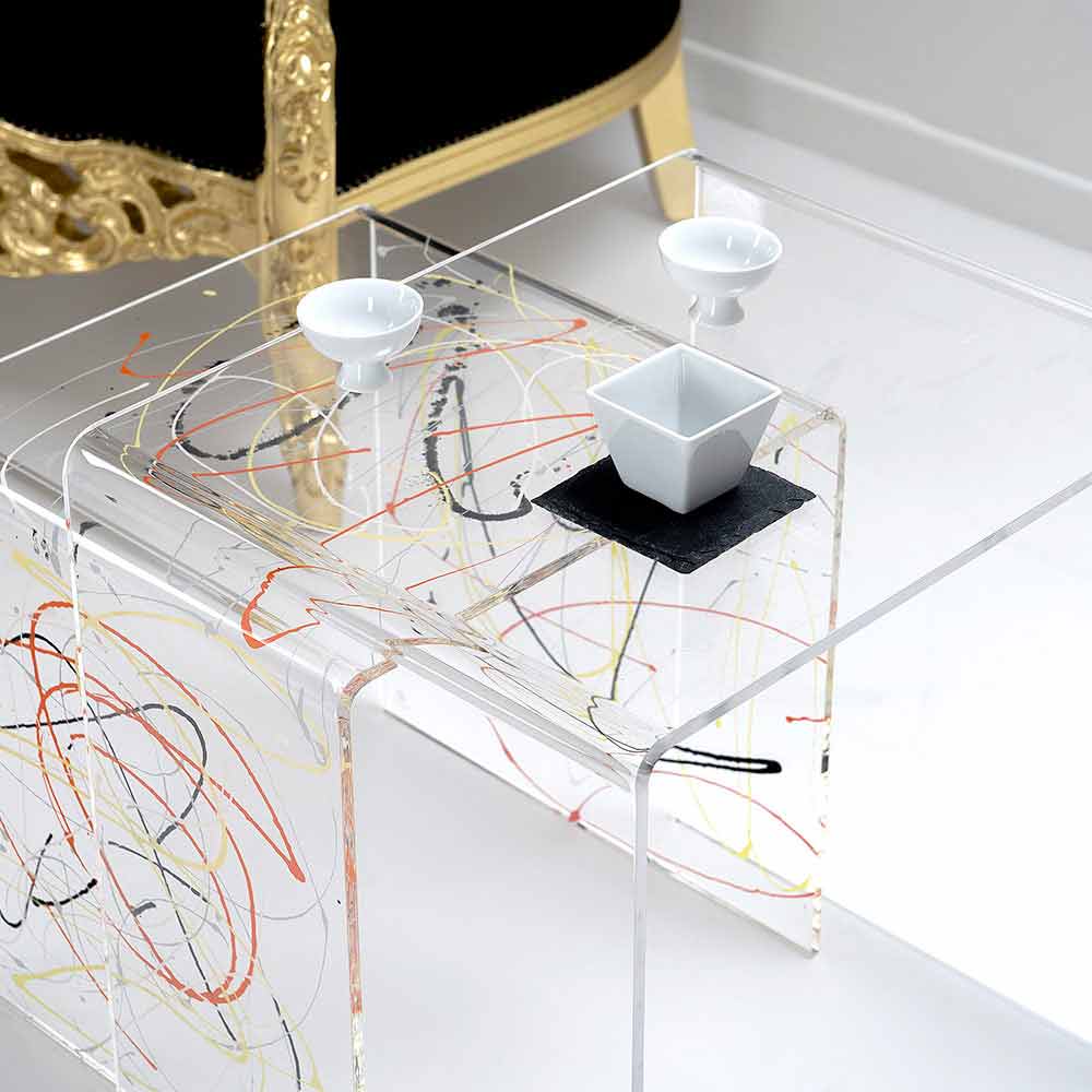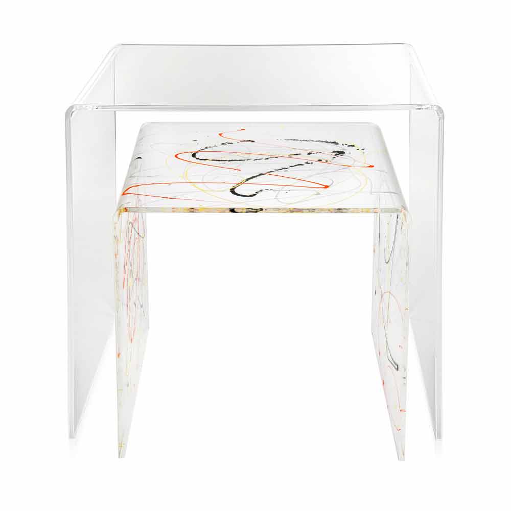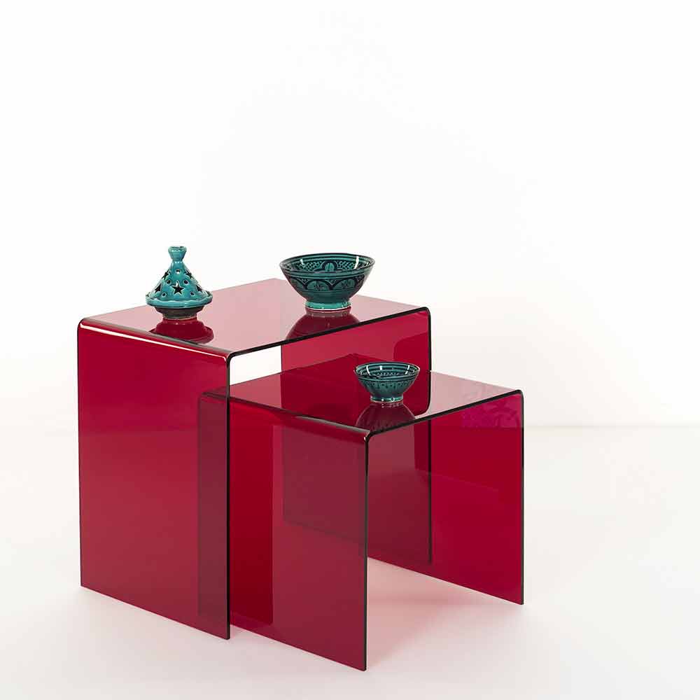 Små borde i farvet plexiglas lavet i Italien, Spinoso