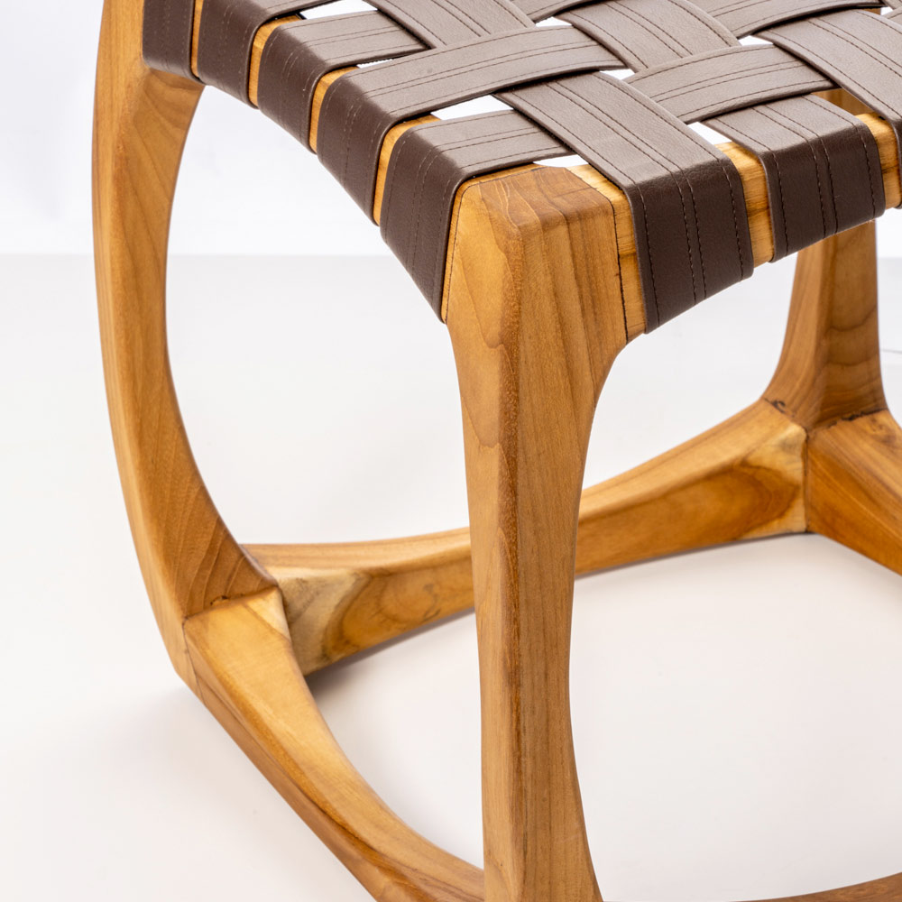 Denne badestol er et sandt mesterværk af design og funktionalitet. Dens buede massive teak- struktur demonstrerer dygtigt håndværk og tilbyder uovertruffen stabilitet, mens lædervævningen af sædet ikke kun tilføjer et strejf af elegance, men sikrer også et behageligt sæde. Med generøse dimensioner fungerer denne taburet ikke kun som et sæde, men også som en støtteoverflade til personlige genstande såsom skønhedsetuier eller badeværelsestilbehør. Det er et alsidigt stykke, der passer perfekt ind i ethvert badeværelse, der kombinerer praktisk og upåklagelig stil .