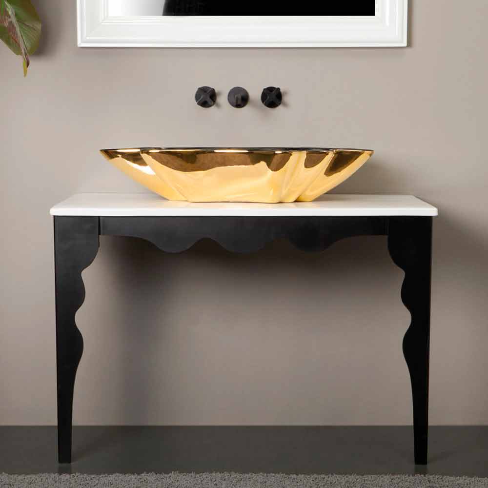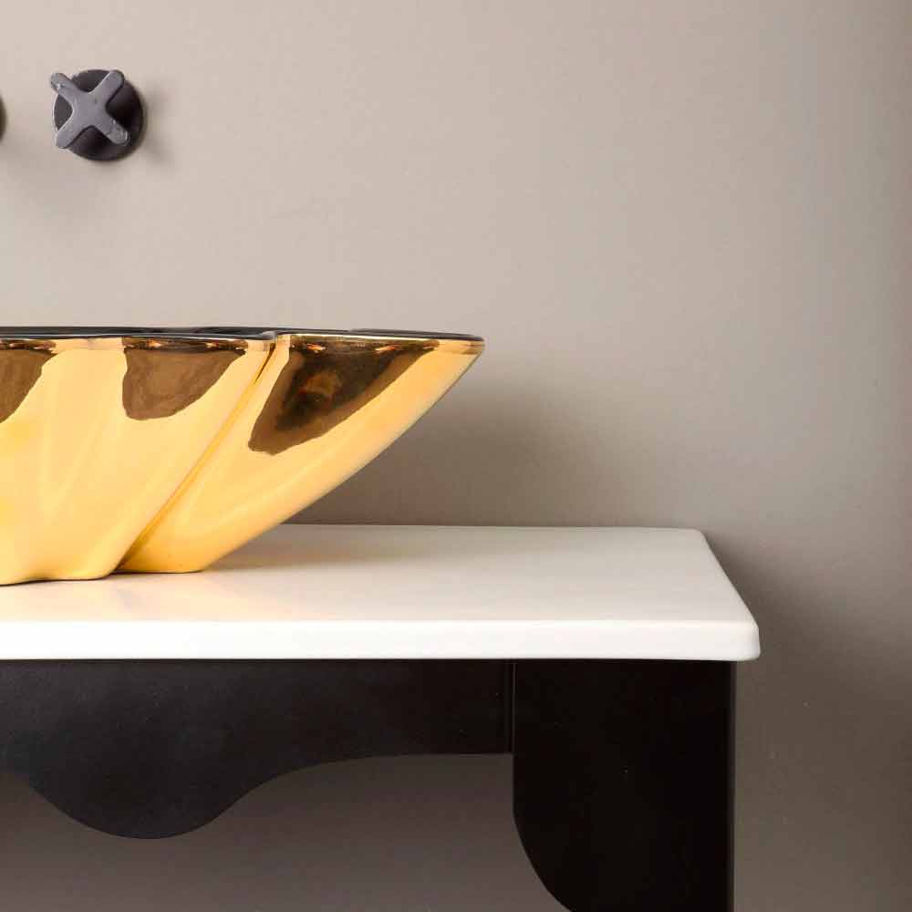 Sort og guld keramisk bordplade håndvask fremstillet i Italien Rayan