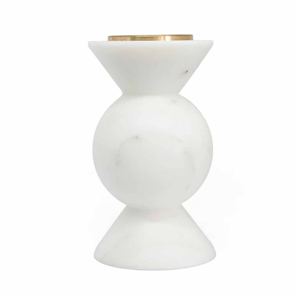 Lysestage med lav design i hvid Carrara marmor og messing Made in Italy.