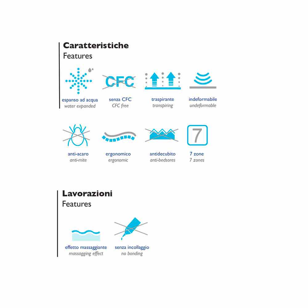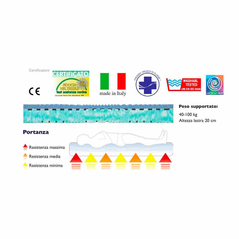 Den bedste åndbarhed er også garanteret af den særlige profil, og de huller, der opretter forbindelse til Memory Foam lag "natur", der hævder i en retfærdig og effektiv måde kropsvægt, dette også formet i bunden for at lette anvendelsen af dette produkt på netværk mekaniseret.