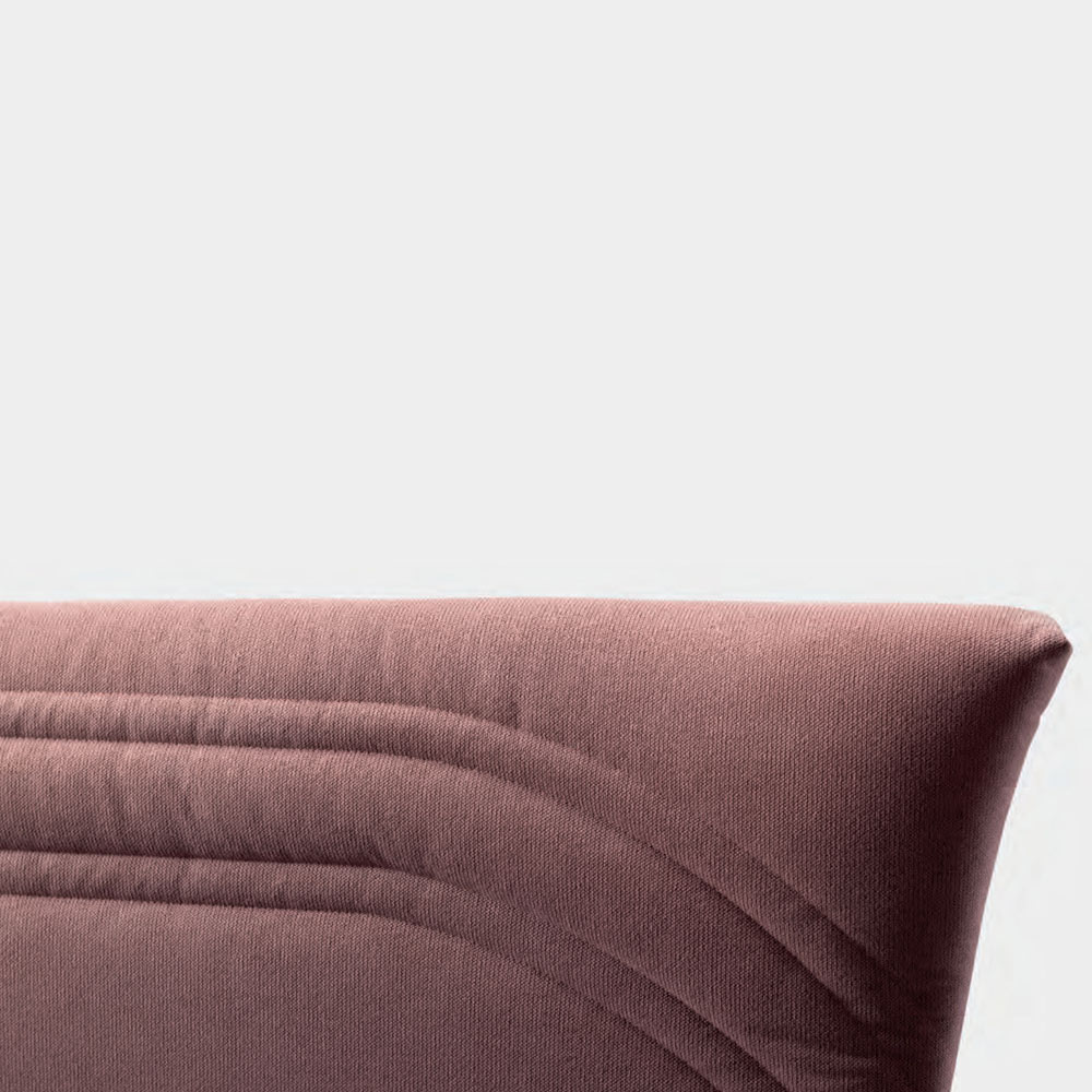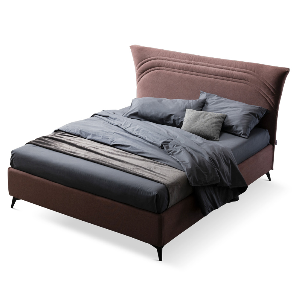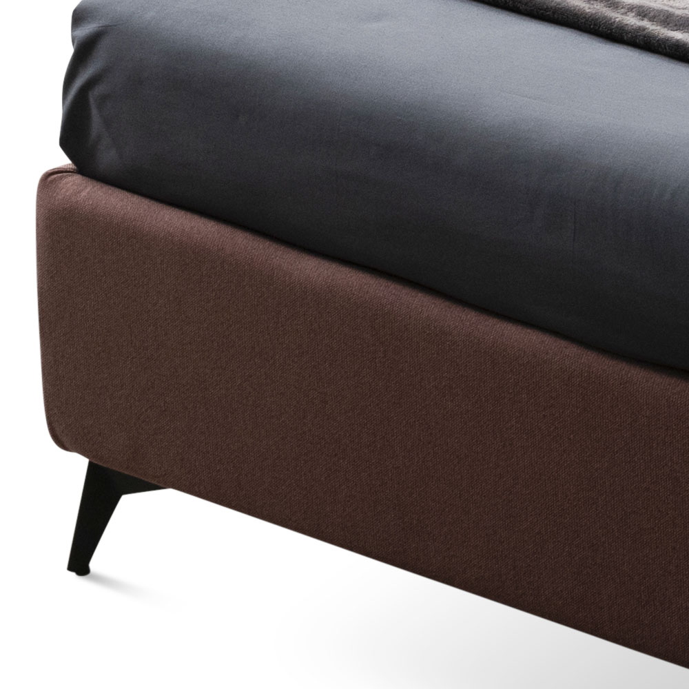 opbevaringsboks, antracitfinish metalfødder (højde 13,5 cm) og unik og innovativ sengegavl lavet med buede sider og et dobbelt quiltet bånd, der løber vandret i vandafvisende og brandhæmmende stof.