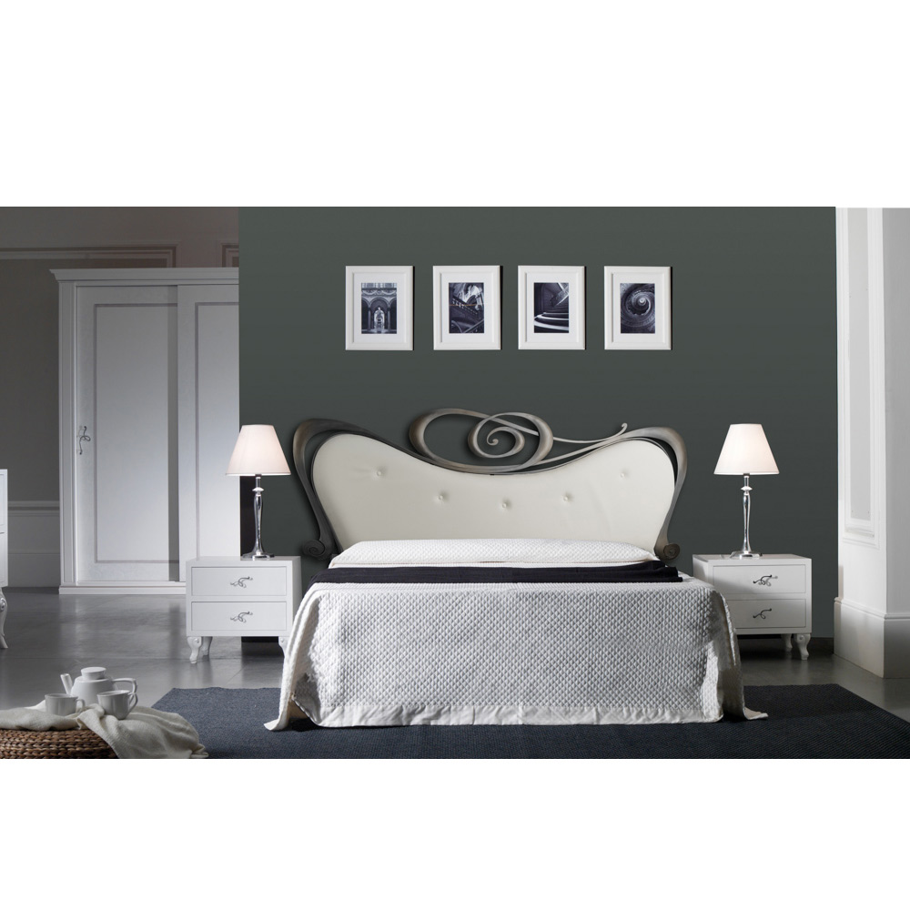 Dobbeltseng med sengegavl i jern og 2 sengeborde Made in Italy