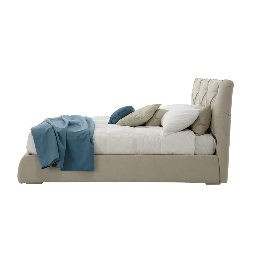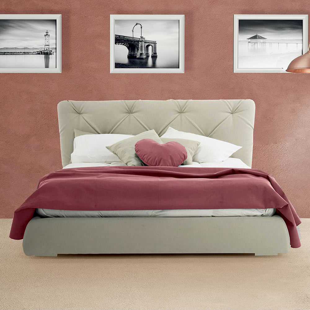 Moderne dobbeltseng med beholder, polstret og betrukket med stof eller øko-læder håndlavet i Italien.