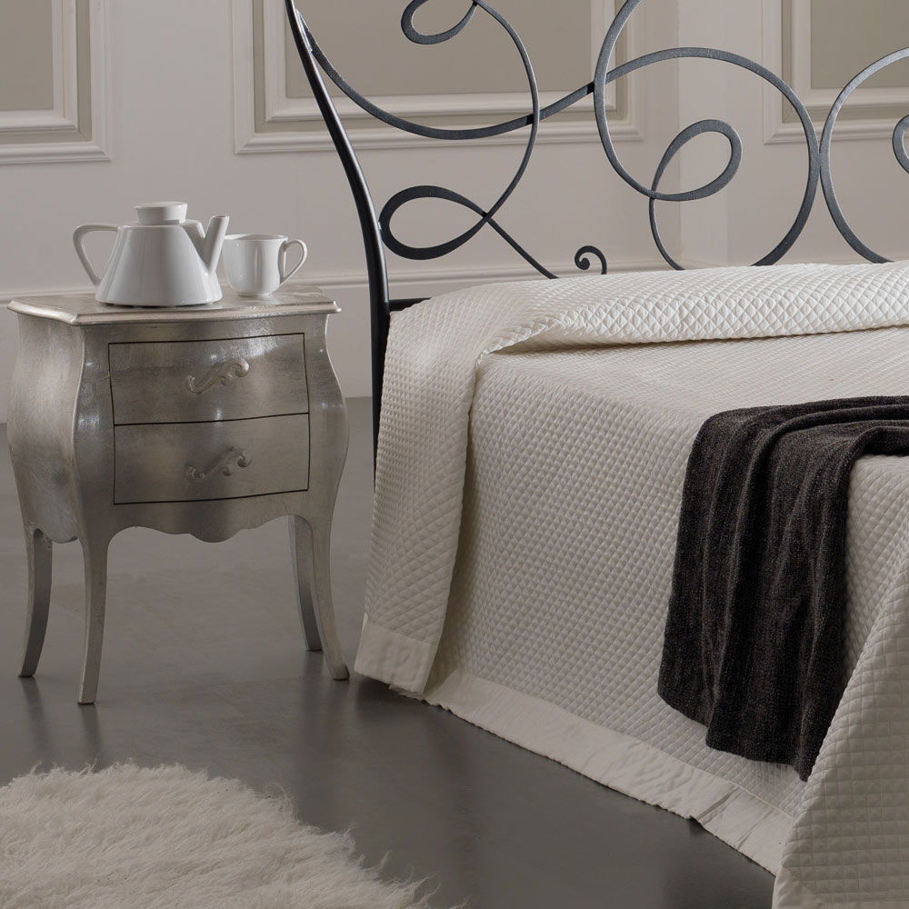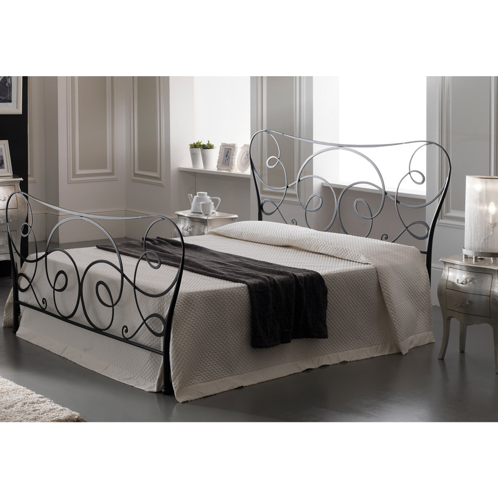 Dobbeltseng med sengegavl i jern og 2 sengeborde Made in Italy
