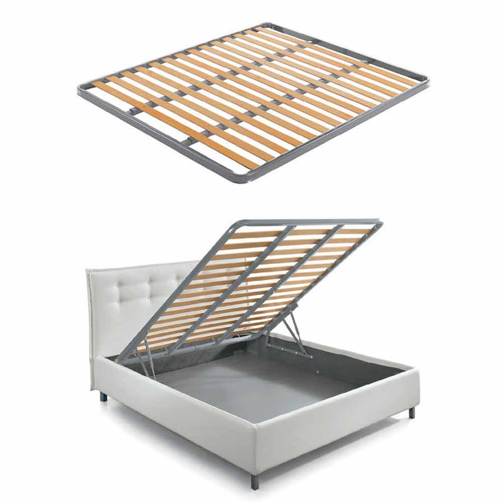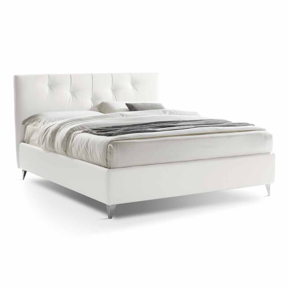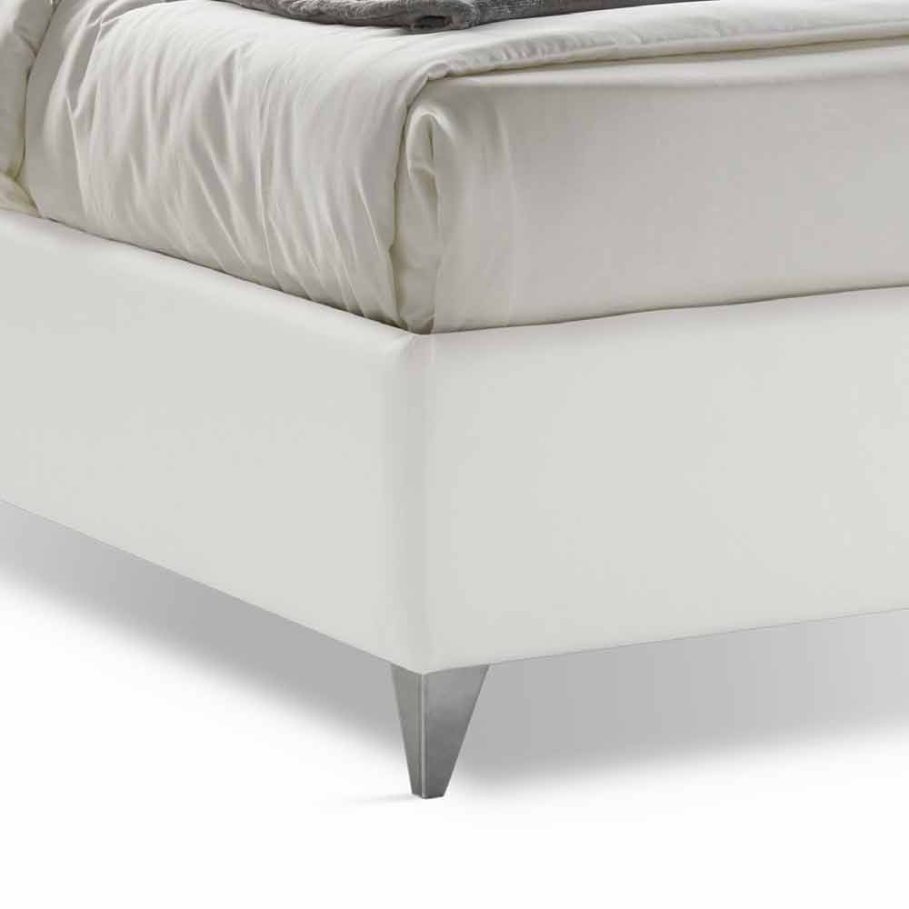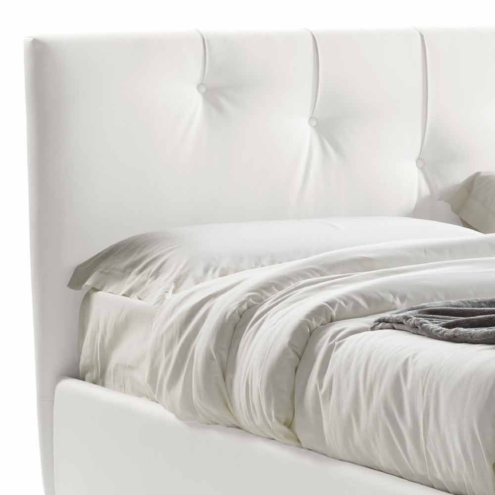Dobbeltseng med moderne designbeholder i hvidt øko-læder, håndlavet i Italien.