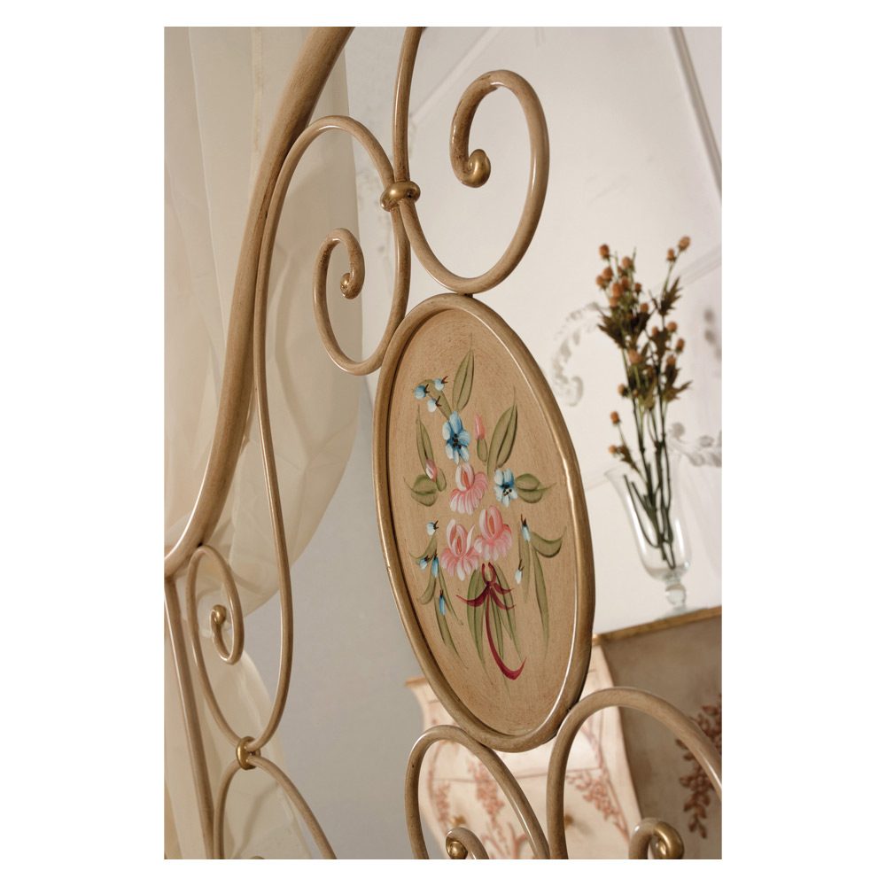 antik elfenbenspulverlakering. Denne seng er et valg af karakter med en decideret klassisk smag, der indeholder enestående blødhed og raffinement. Blomsterdetaljen på sengegavlen er håndlavet med stor omhu og opmærksomhed for at give produktet det unikke og ugentlige touch.