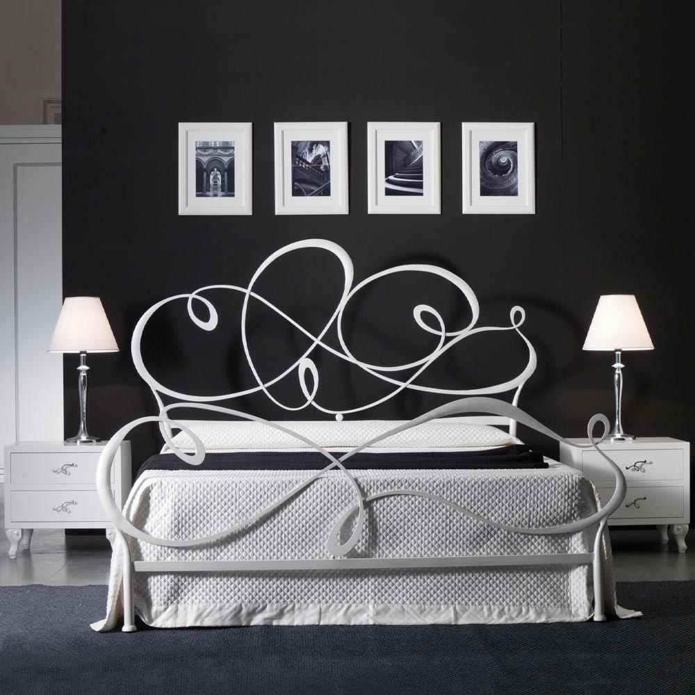 Dobbeltseng med sengegavl i jern og 2 sengeborde Made in Italy