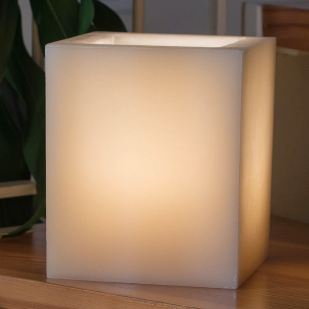 Firkantet duftende lanterne lavet af voks fås i forskellige farver med internt stearinlys inkluderet Made in Italy.