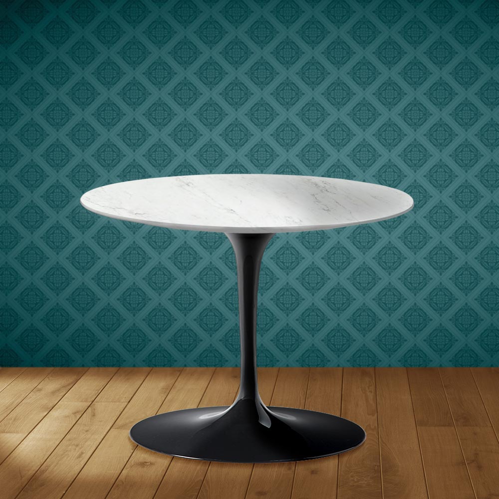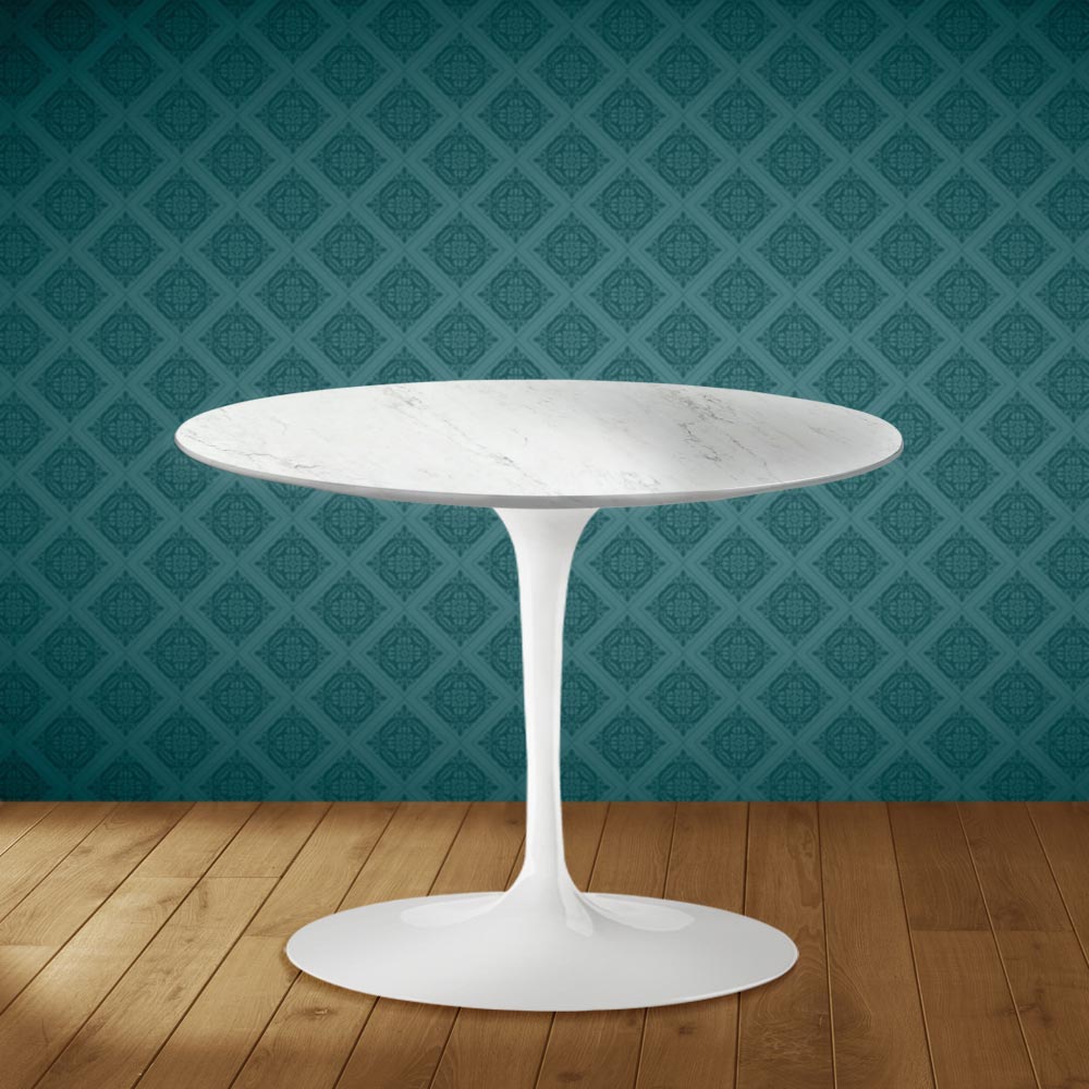 Sofabord med rund bordplade i Dekton Salina keramik, blank Carrara-marmorlook og poleret aluminiumsfod , fremstillet udelukkende i Italien . Dette møbel kan takket være sine enkle og raffinerede finish placeres i stuer, der er indrettet i en række forskellige stilarter. Det vigtigste træk, der adskiller det fra lignende produkter, er topmaterialet, Dekton Salina keramik, en fremragende allieret til at gøre miljøet mere imødekommende og behageligt takket være dets udsøgte grafik . Desuden skaber kombinationen af Dekton keramik og poleret aluminium en perfekt kombination, der gør dette sofabord velegnet til alle lejligheder.