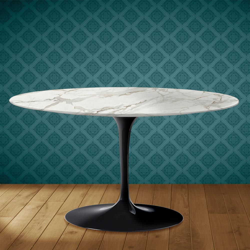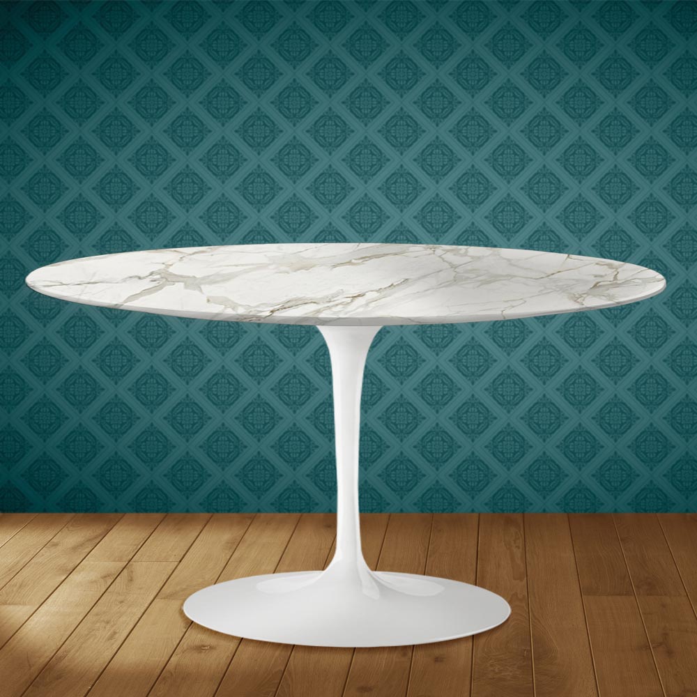 Sofabord med en oval bordplade i poleret Dekton-keramik, en blank Calacatta-marmoreffekt og en poleret aluminiumsbase , udelukkende fremstillet i Italien . Dette møbeltilbehør har to unikke egenskaber: den polerede Dekton-keramik og dens ovale form. Dekton-keramik er kendetegnet ved sin komplekse og yderst raffinerede grafik , der skaber en varm og indbydende atmosfære i ethvert opholdsrum. Dette materiale er også af høj kvalitet og meget holdbart . Den karakteristiske ovale form er i stigende grad populær til indretning af rum med originalitet takket være dens slanke linjer samt dens praktiske anvendelighed og funktionalitet.