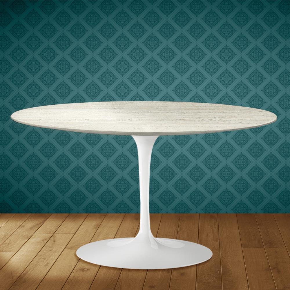 Sofabord med en oval bordplade i Dekton marmorkeramik, en mat travertin marmorlook og en poleret aluminiumsbase , udelukkende fremstillet i Italien . Dette møbeltilbehør har to unikke egenskaber: Dekton marmorkeramik og dets ovale form. Dekton keramik er kendetegnet ved sin komplekse og yderst raffinerede grafik , der skaber en varm og indbydende atmosfære i ethvert opholdsrum. Dette materiale er også af høj kvalitet og meget holdbart . Den karakteristiske ovale form er i stigende grad populær til indretning af rum med originalitet takket være dens slanke linjer samt dens praktiske anvendelighed og funktionalitet.