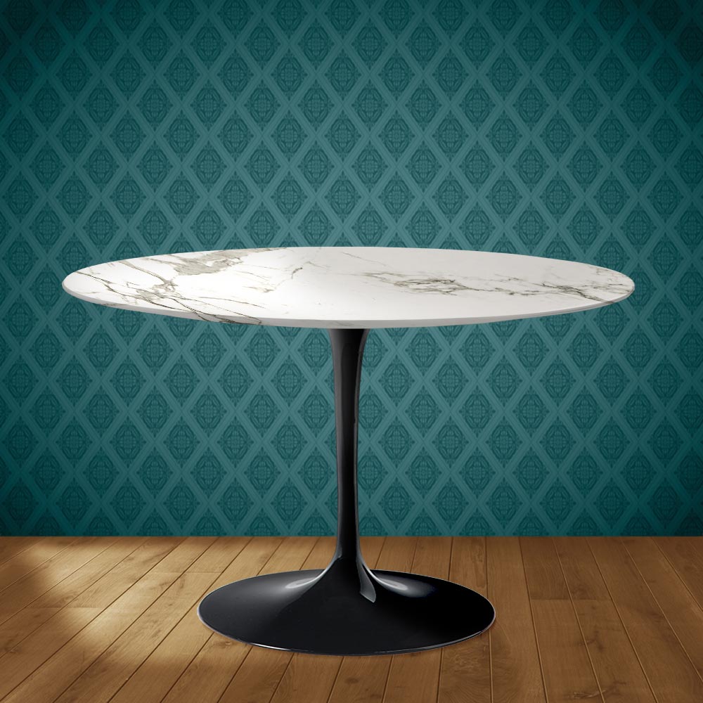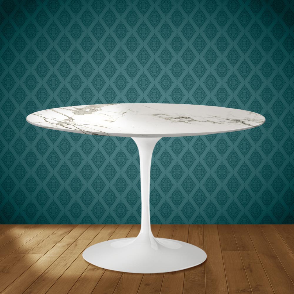 Spisebord med rund bordplade i Dekton Aura 22 keramik, mat Carrara Statuario marmorlook og poleret aluminiumsfod , fremstillet i Italien. De lineære og raffinerede finish skaber et møbel, der nemt passer ind i stuer og køkkener indrettet i en række forskellige stilarter. Kombinationen af Dekton Aura 22 keramik og poleret aluminium gør dette bord velegnet til alle lejligheder og skaber et indbydende rum. Praktisk og funktionel er nøgleordene til at beskrive dette produkt, uden at glemme den elegance, der tilbydes af den unikke farve og grafik på Dekton Aura 22 keramikken.