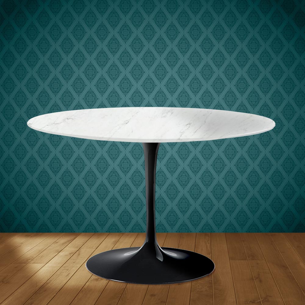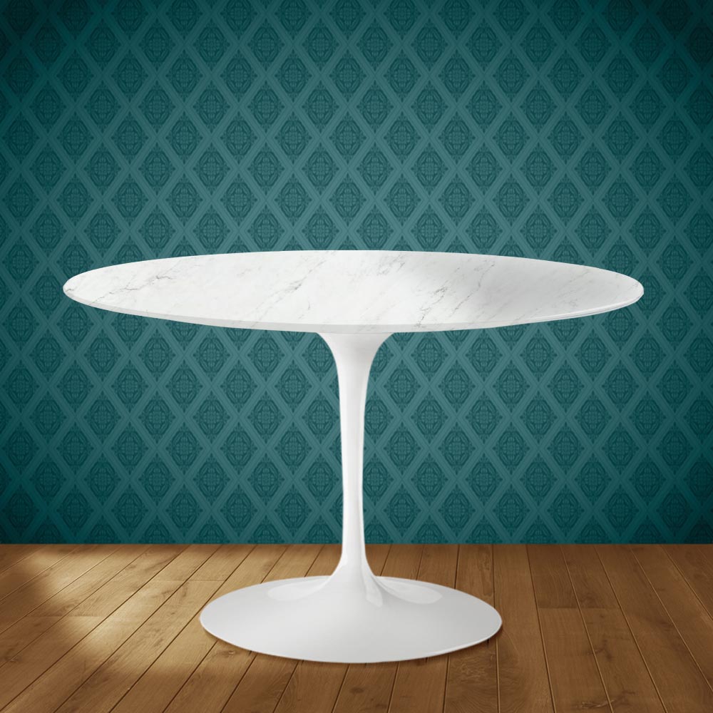 Spisebord med rund bordplade i Dekton Salina keramik med en blank Carrara-marmor-effekt og en poleret aluminiumsbase , fremstillet i Italien. De lineære og raffinerede finish skaber et møbel, der nemt passer ind i stuer og køkkener indrettet i en række forskellige stilarter. Kombinationen af Dekton Salina keramik og poleret aluminium gør dette bord velegnet til enhver lejlighed og skaber et indbydende rum. Praktisk og funktionel karakter er nøgleordene for at beskrive dette produkt, uden at overse den elegance, som den unikke farve og grafik i Dekton Salina keramikken giver.