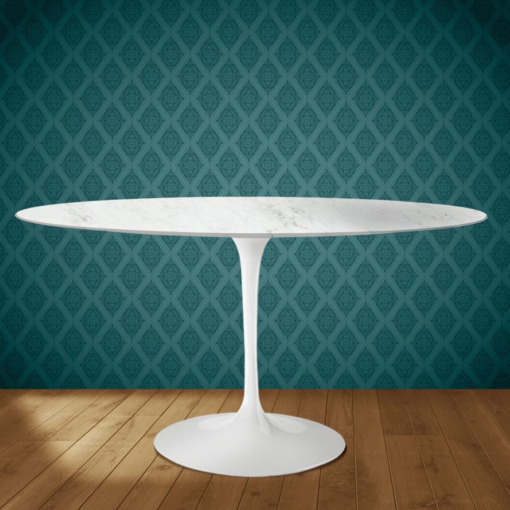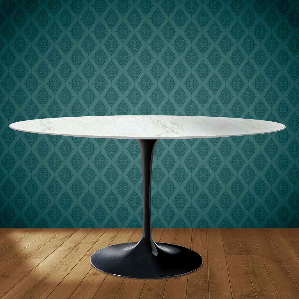 Spisebord med oval bordplade i Dekton Salina keramik, fremstillet i Italien
