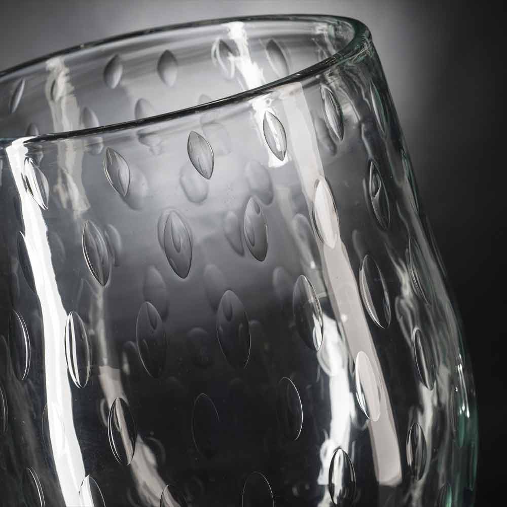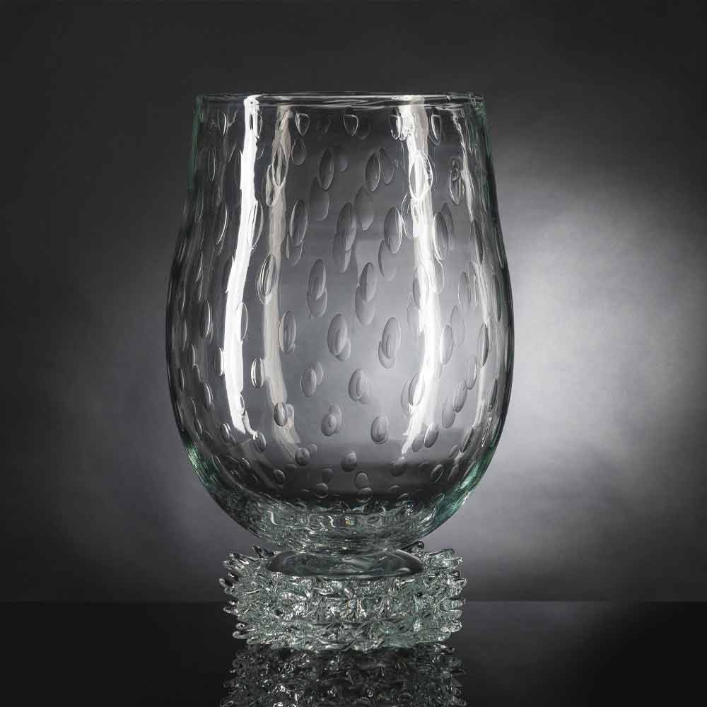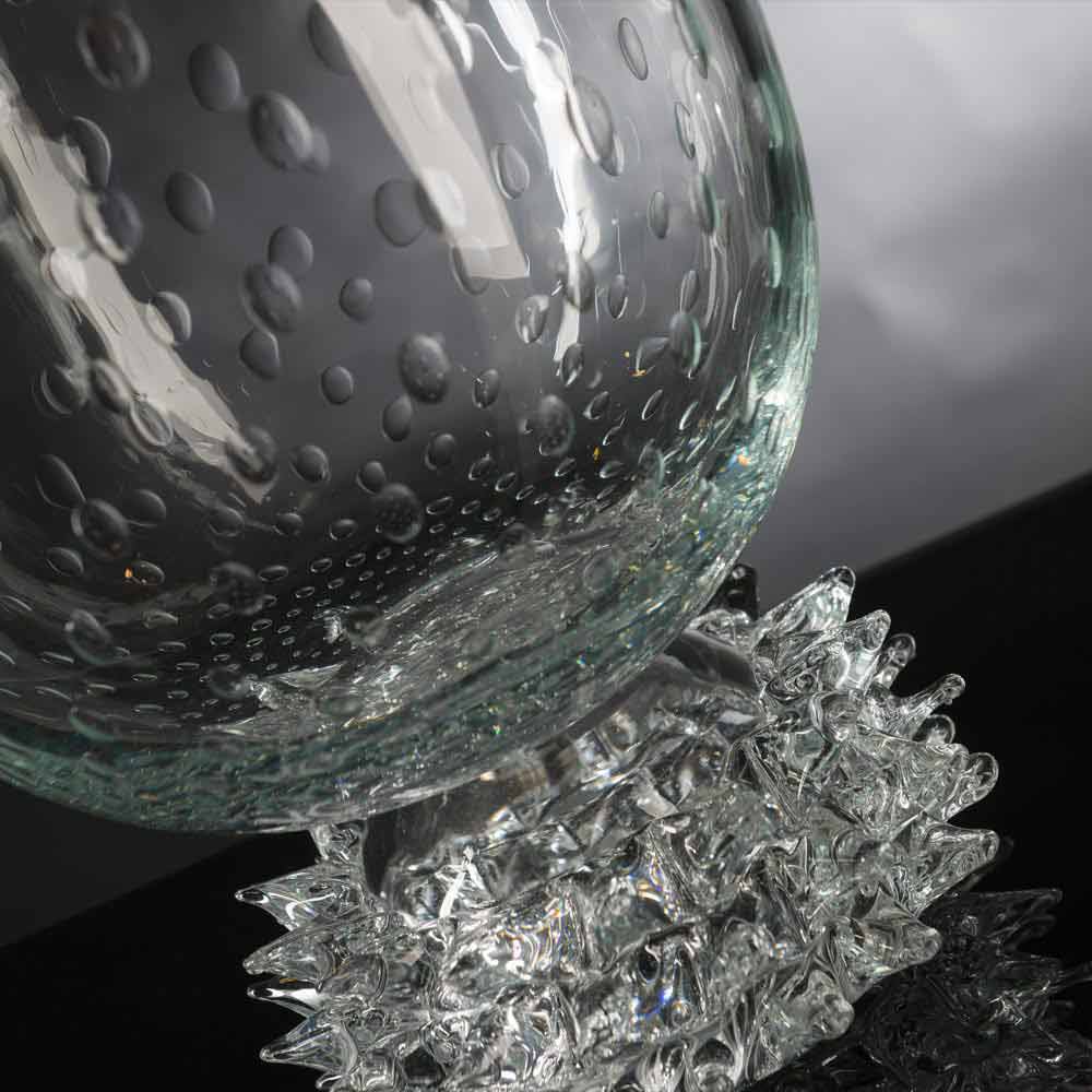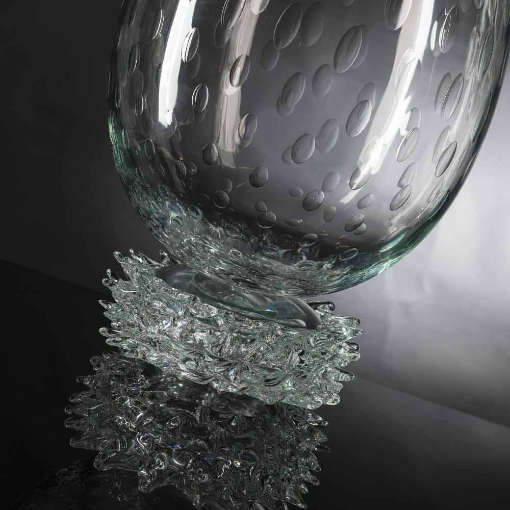 gennemsigtigt Murano-blæst glas med bearbejdet bund. Et supplement præget af et