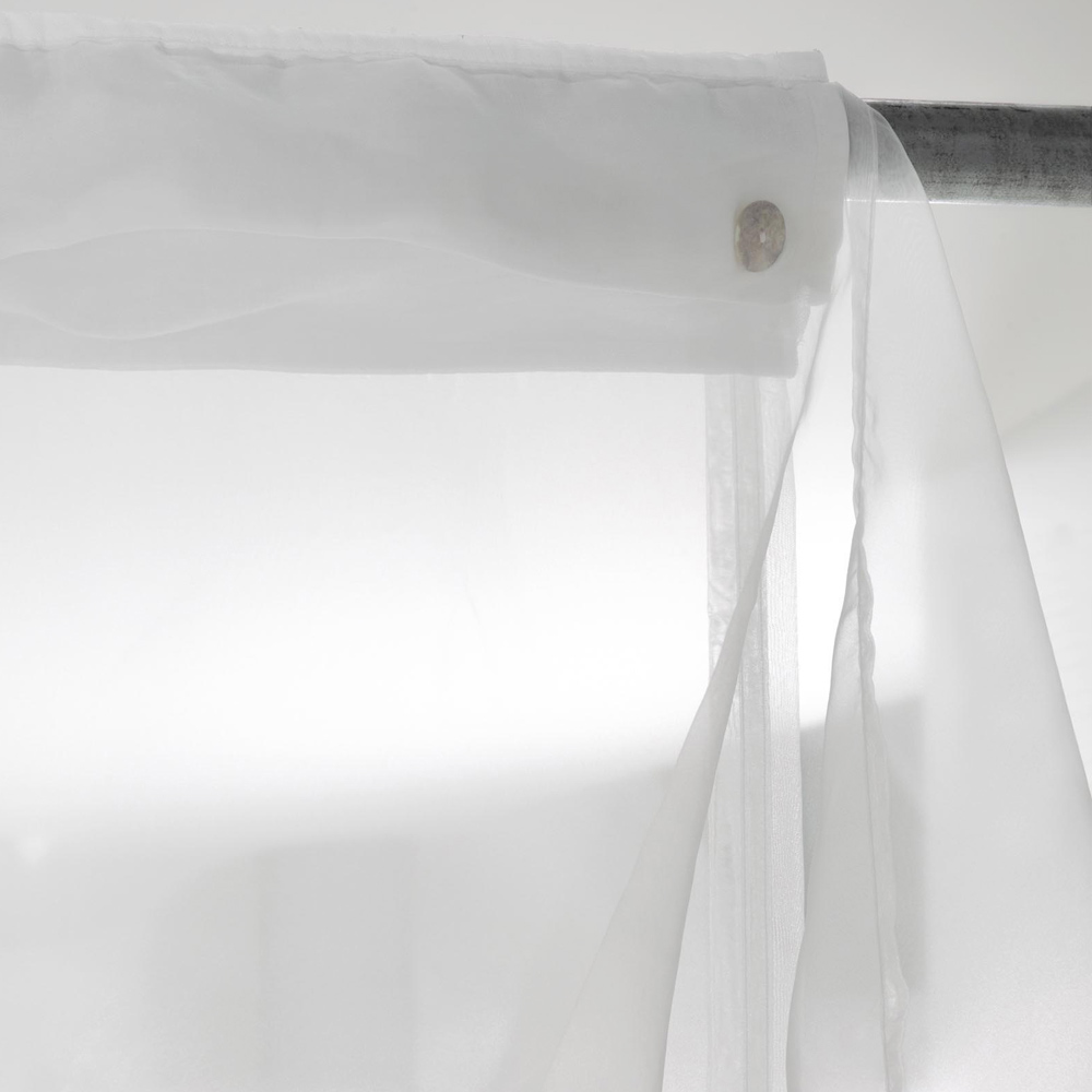 Organzatæppe med valance og fastgørelse til stang med perlemorsknapper, håndlavet kvalitet fremstillet i Italien.