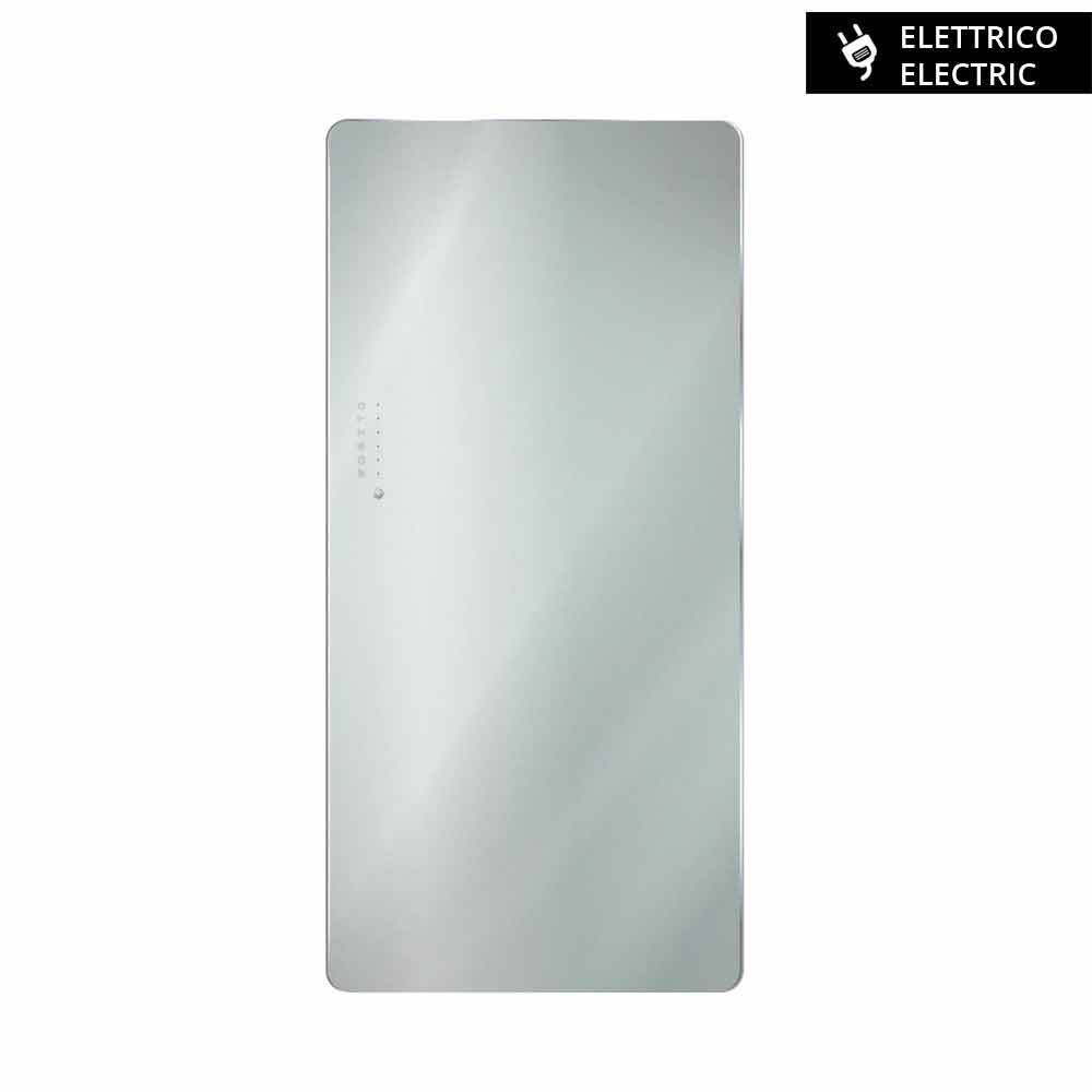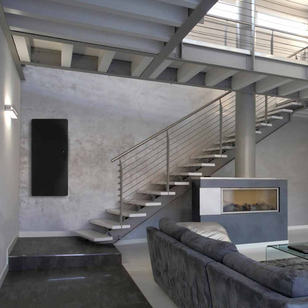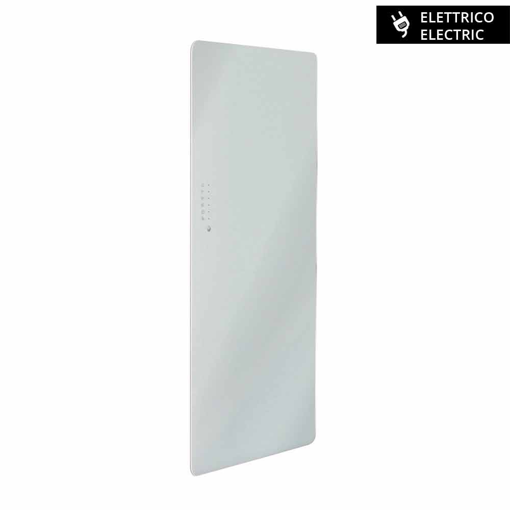 4- Sikkerhed : Den er bygget i hærdet glas og kan prale af den højeste certificering for sikkerhedsglas. Konstruktionen indsætter en klæbende plastfilm, der gør det muligt for glasset at opnå den europæiske B1-certificering med ydeevner svarende til dem for et brudsikkert lamineret glas. De specialdesignede beslag forhindrer, når produktet er installeret, utilsigtet frigivelse i overensstemmelse med de tyske sikkerhedsforskrifter for radiatorer. Denne elektriske radiator giver dig også mulighed for at vælge en lav overfladetemperatur (50 °C) for at undgå kontakt med alt for høje overflader for børn eller ældre, som kan røre ved dem eller utilsigtet læne sig op ad dem.