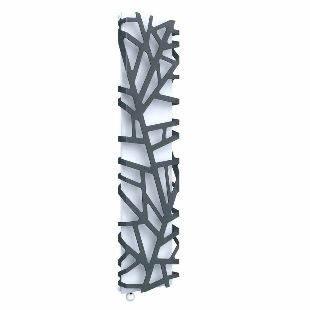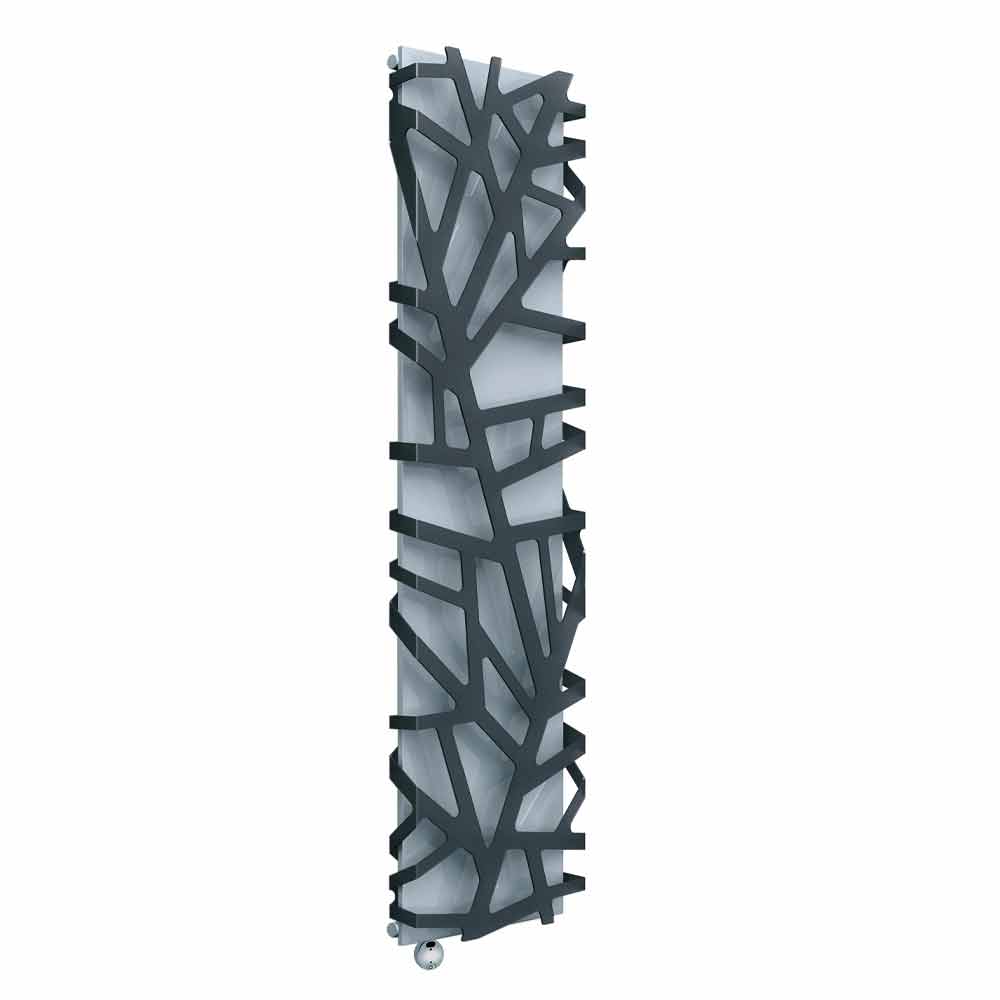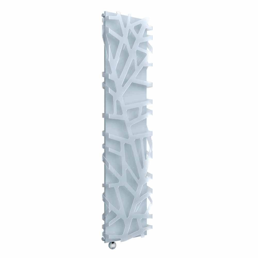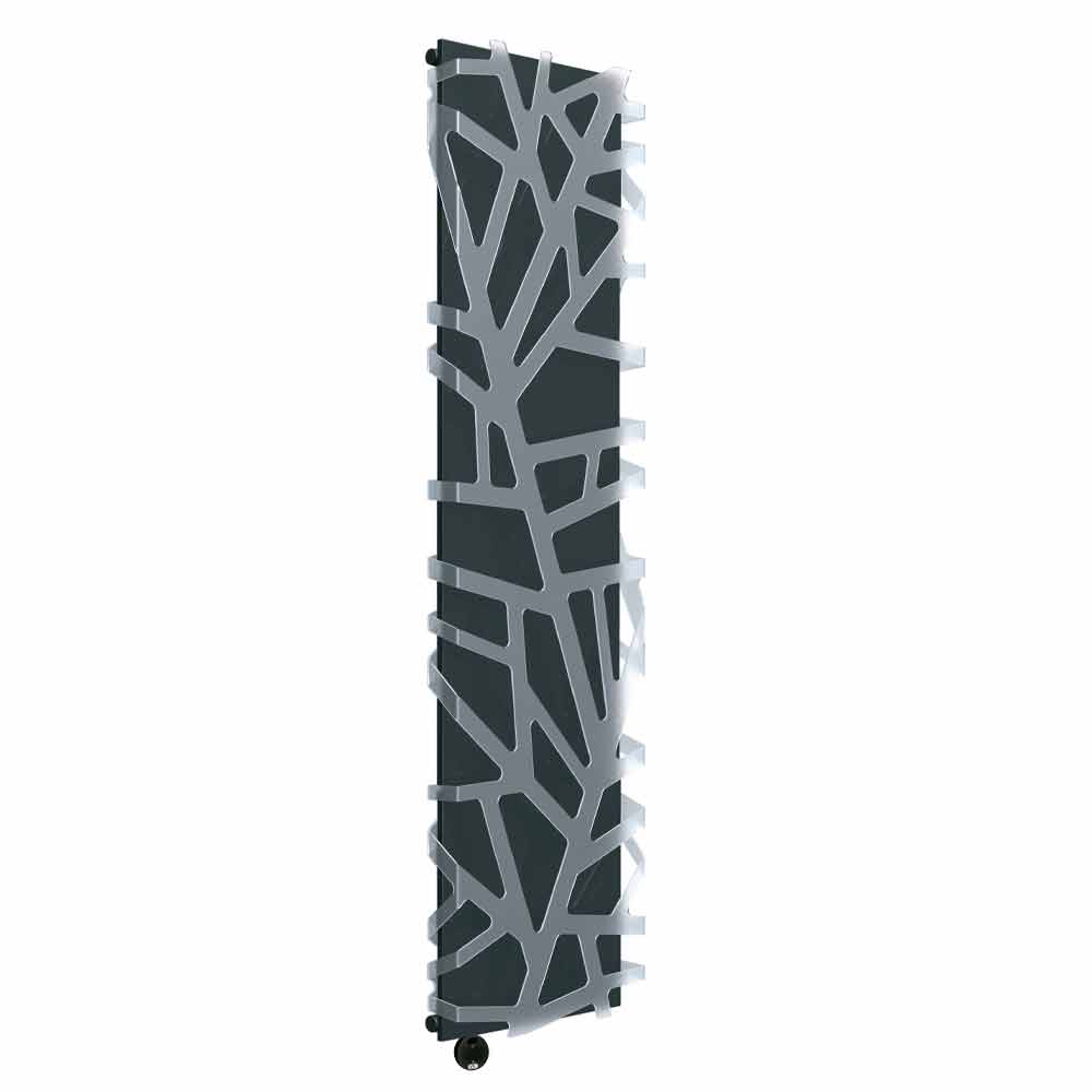 Lodret elektrisk vægmonteret radiator af moderne design i stål og methacrylat, fremstillet i Italien.