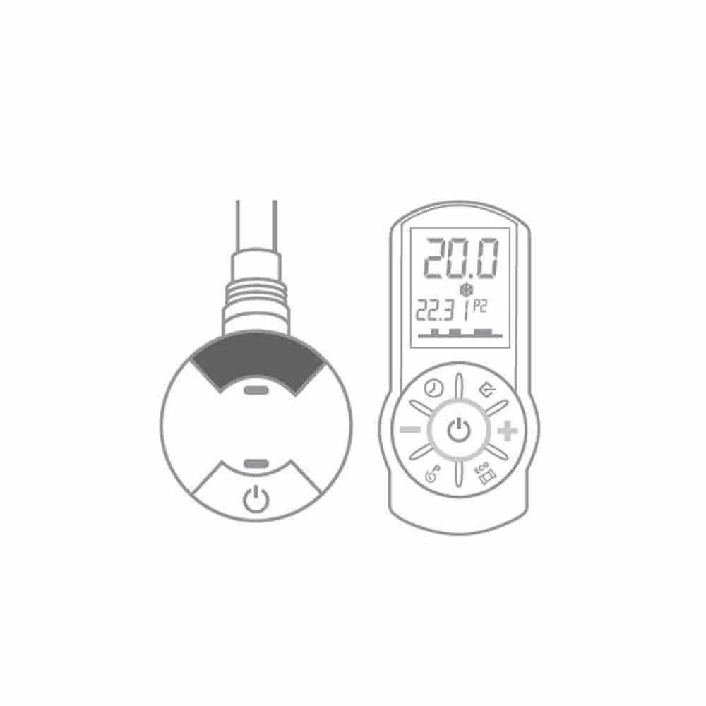 110 mm termostaten skal føjes til højden. Hvid termostatboks som standard til hvide radiatorer; krom til de farvede radiatorer og finish i rustfrit stål. Enfaset 230 volt strømforsyning.