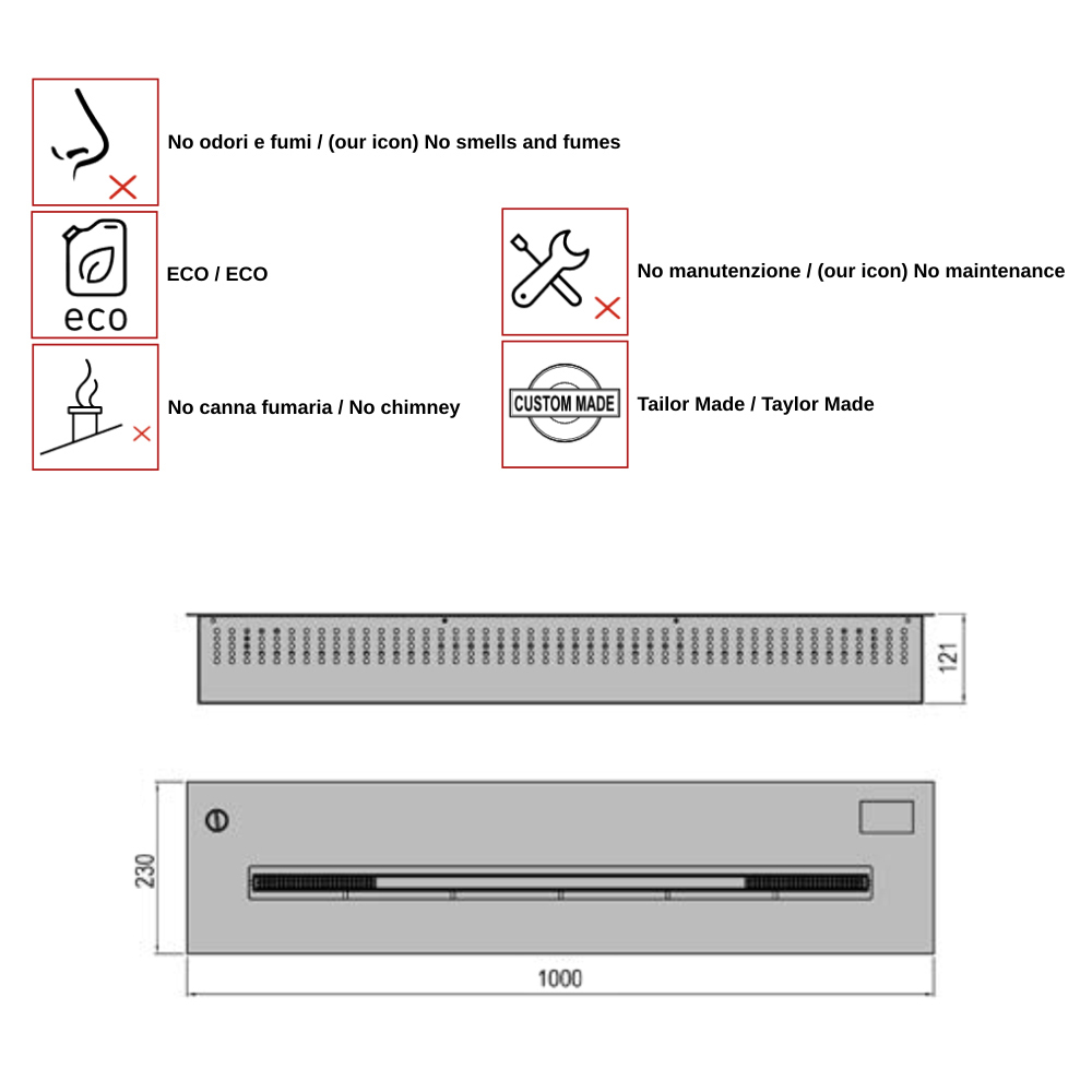Aron 100 er en lineær forsænket elektrisk brænder, komplet med en fjernbetjening til at sikre en fjernbetjening og en touch screen panel til manuel styring. Hjertet i Viadurini Fire Collection produkter er repræsenteret ved en samling af brændere i rustfrit stål, herunder 100 Aron.