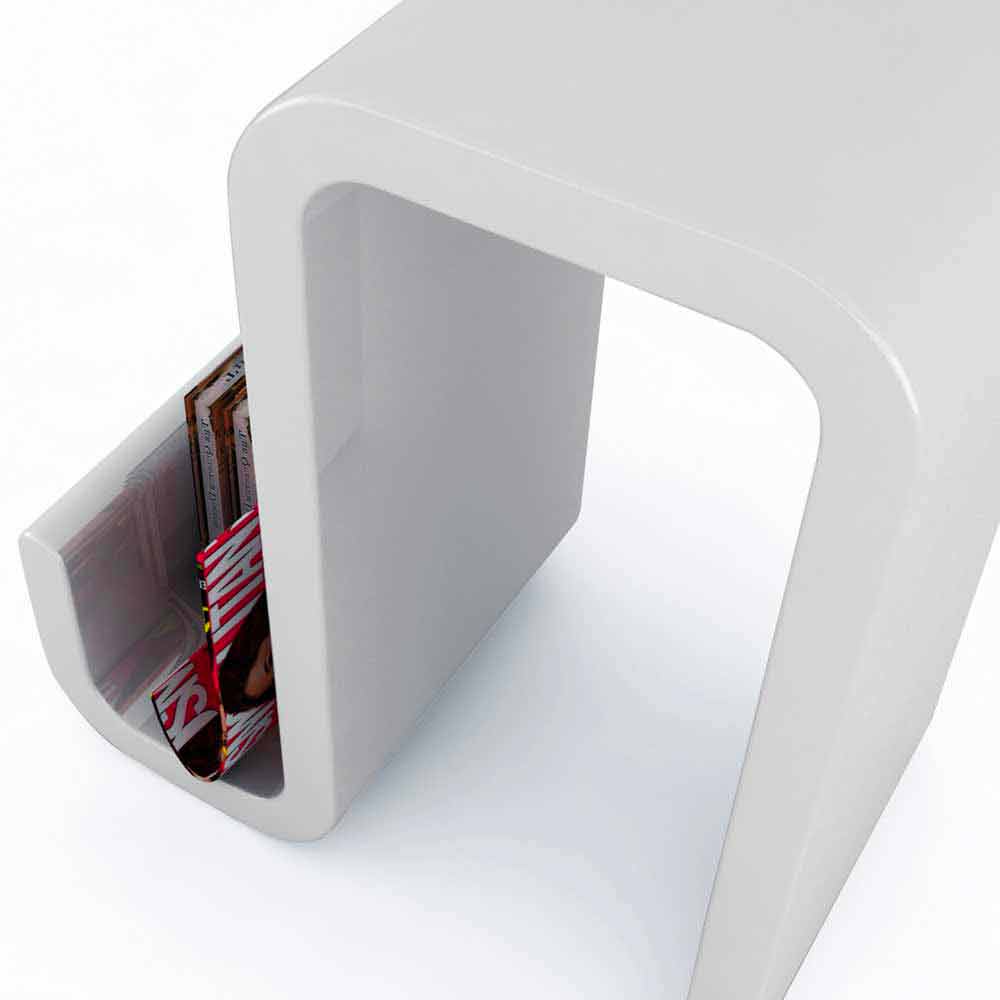 Konsolen/skamlen i solid overflade; er et raffineret designobjekt med en moderne og snoet linje, et produkt, der skal placeres i boliger og offentlige steder som barer eller venteværelser.