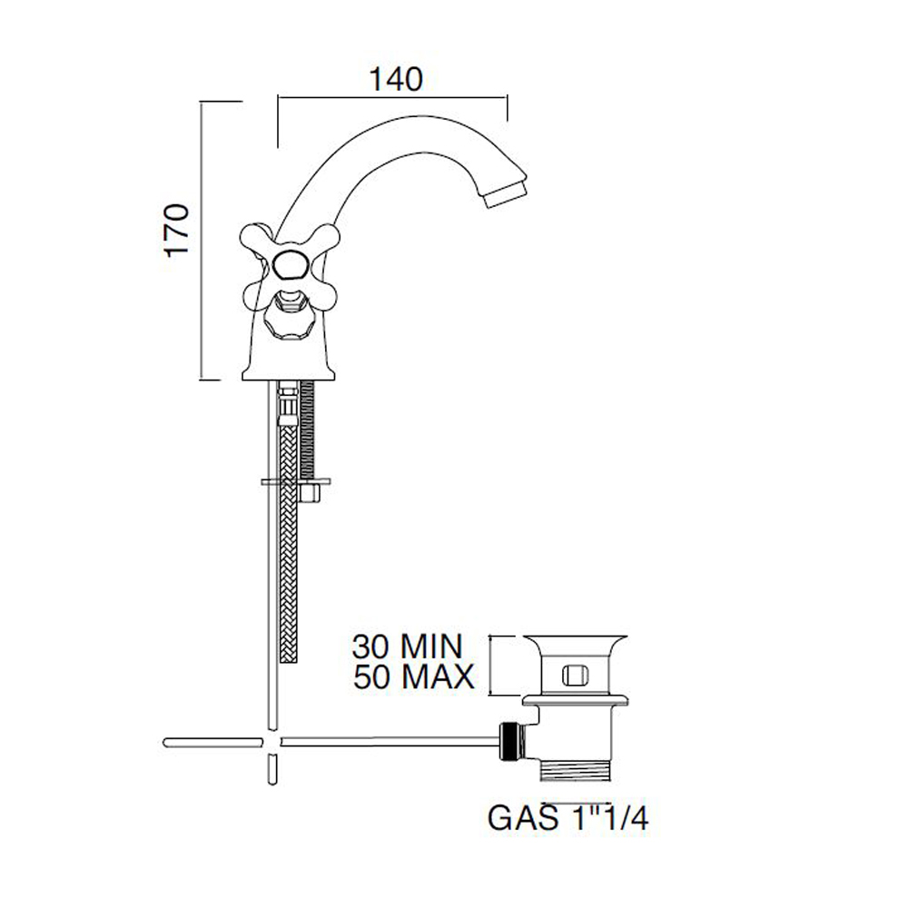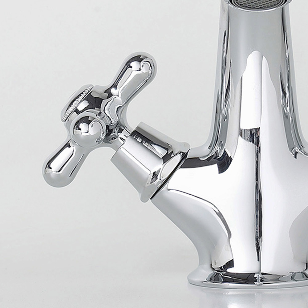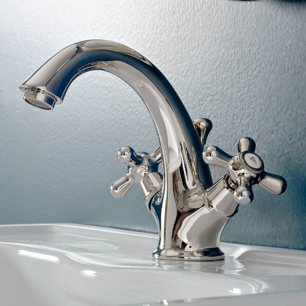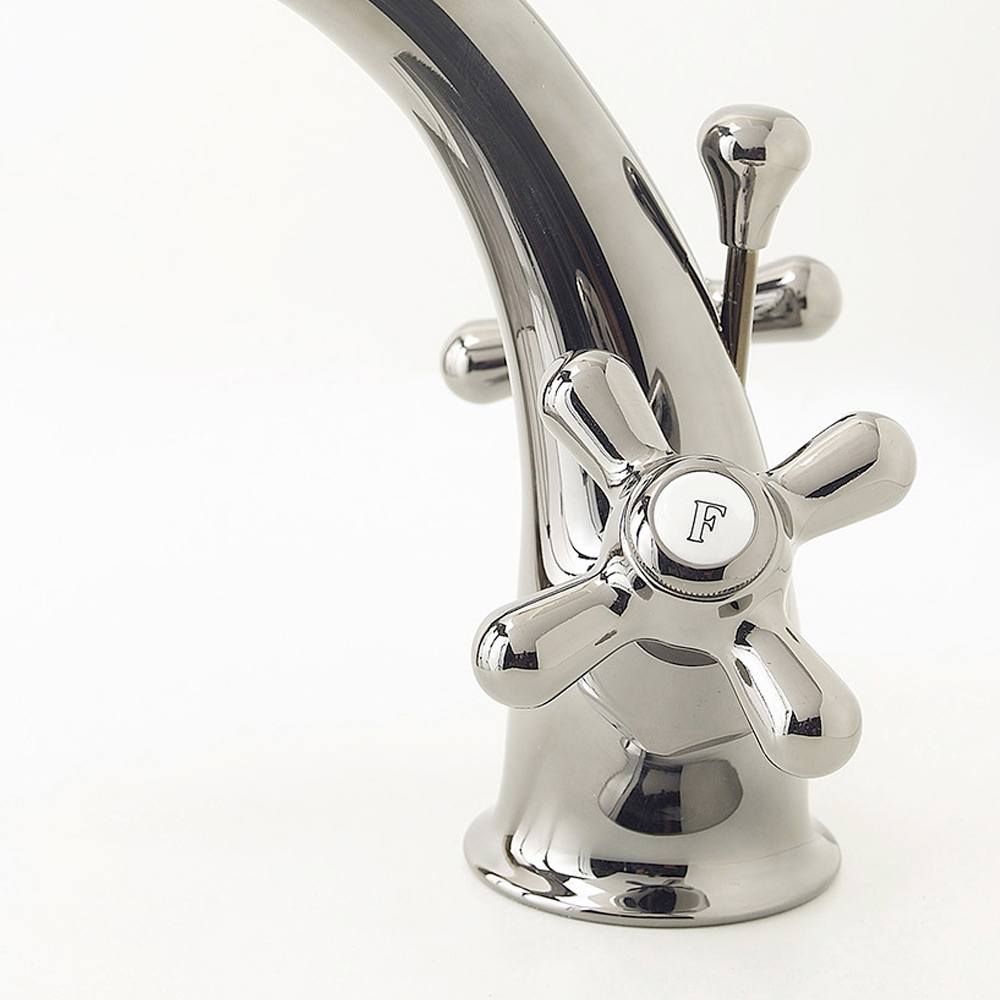 Et-huls håndvaskarmatur med afløb i klassisk stil lavet af messing, høj kvalitet fremstillet i Italien.