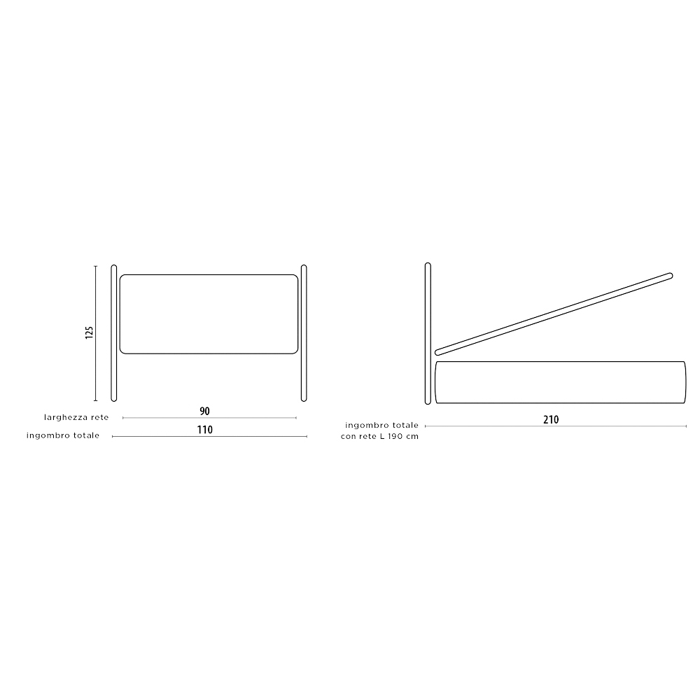 Dimensioner:- 110 x 210 x højde 125 cm - sengebund 90x190 cm