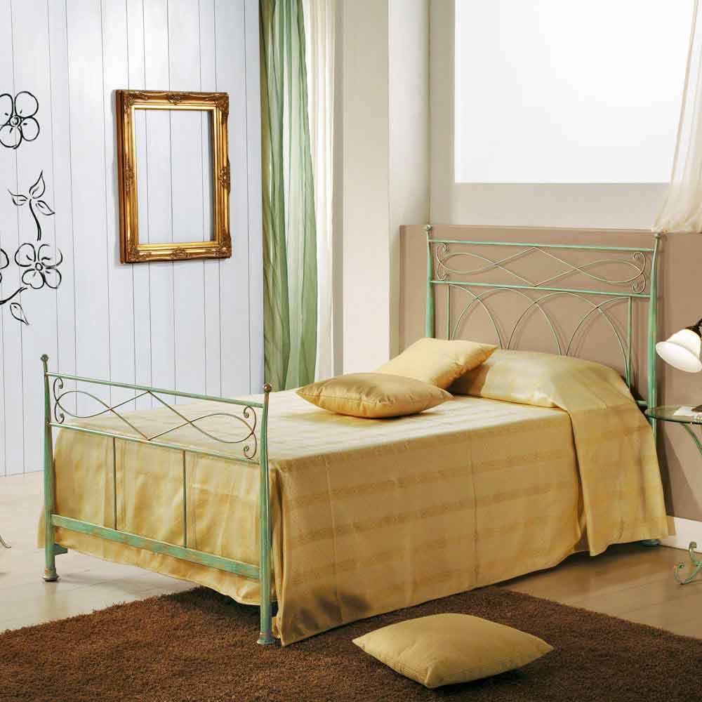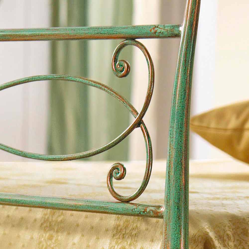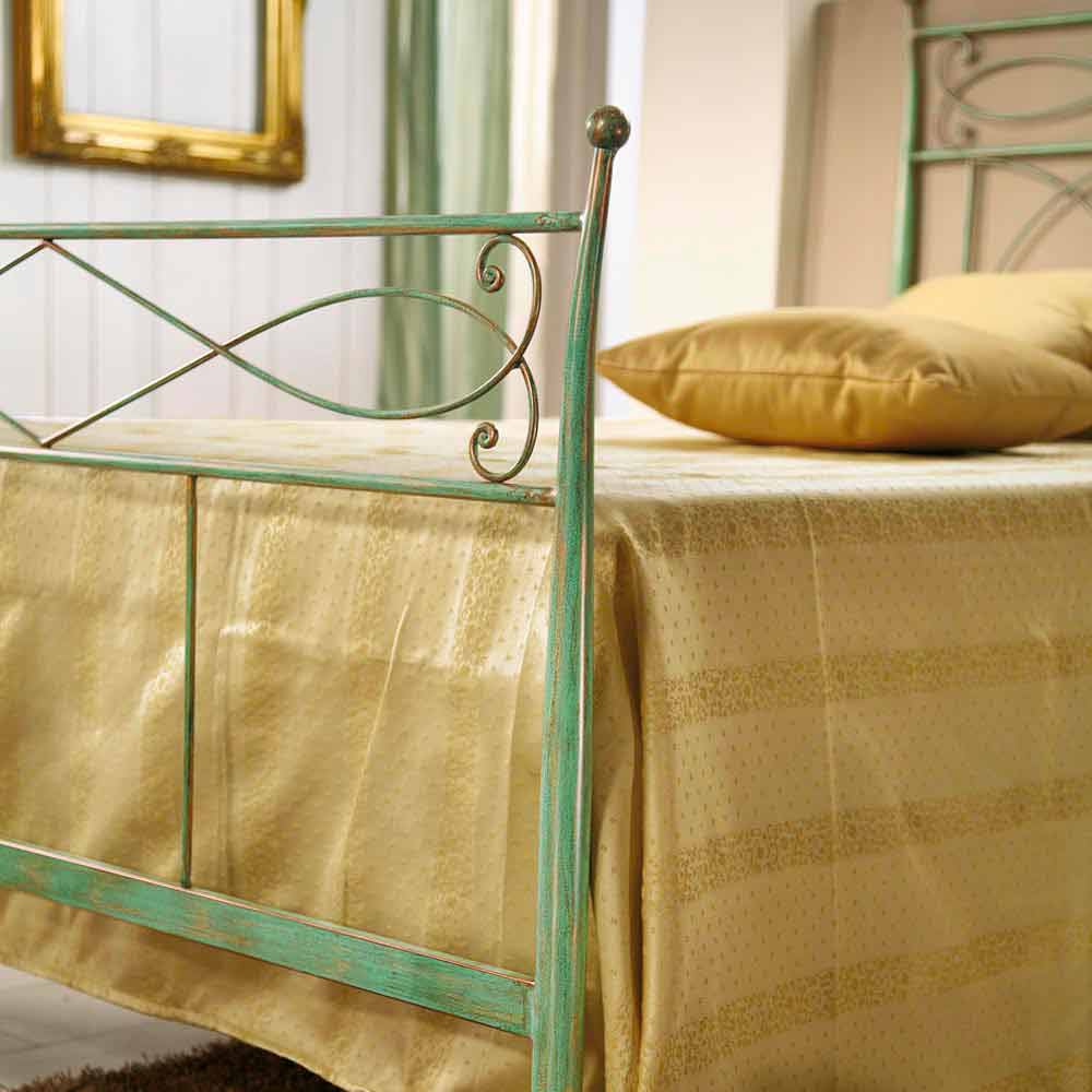 Denne seng er hånd-smedet og har en smedejern stel med ben i koniske rør. Alt i den kreative og delikat Kobber Grøn finish.