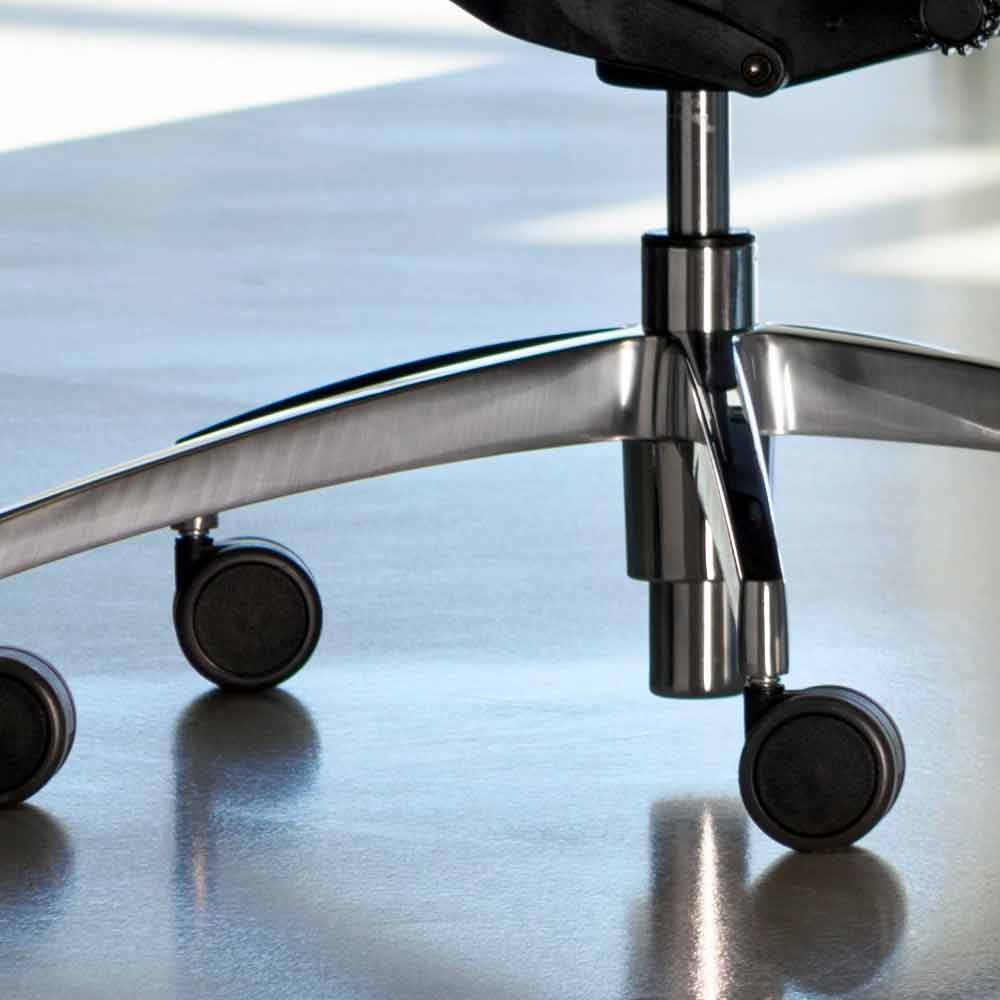 drejelig stålkonstruktion og med hjul med skinnende kromfinish, skaber ryglænets elastiske net og det innovative system af beskyttede fjedre inde i sædet en symbiose af