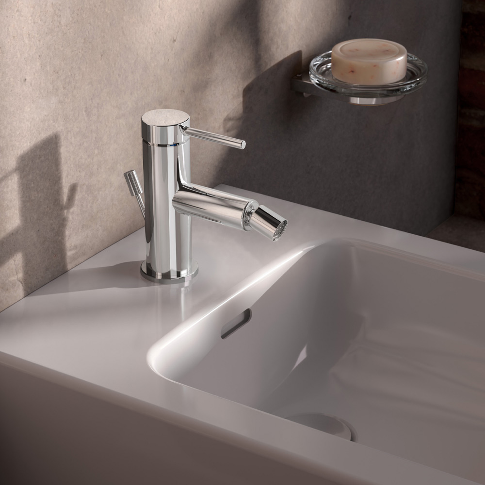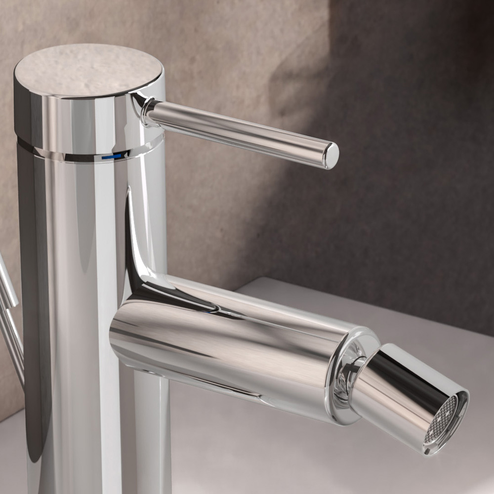 etgrebs bidetmixer har et design med perfekt synkronisering mellem håndtaget og tuden.