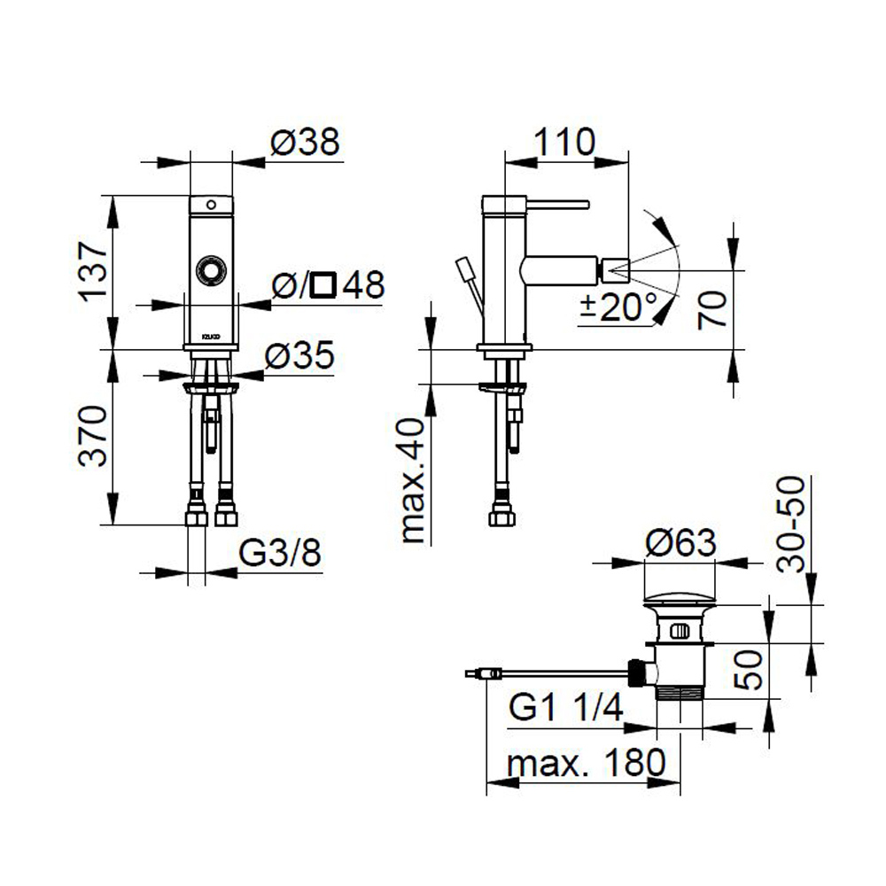 materialer af høj kvalitet. Tekniske egenskaber:- med eller uden 1 1/4 tomme pop-up affald;