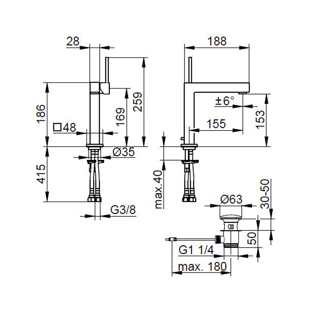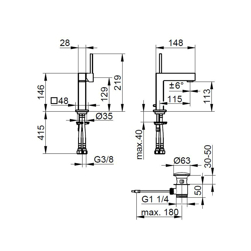 materialer af høj kvalitet. Tekniske egenskaber:- med eller uden 1 1/4 tomme pop-up affald;